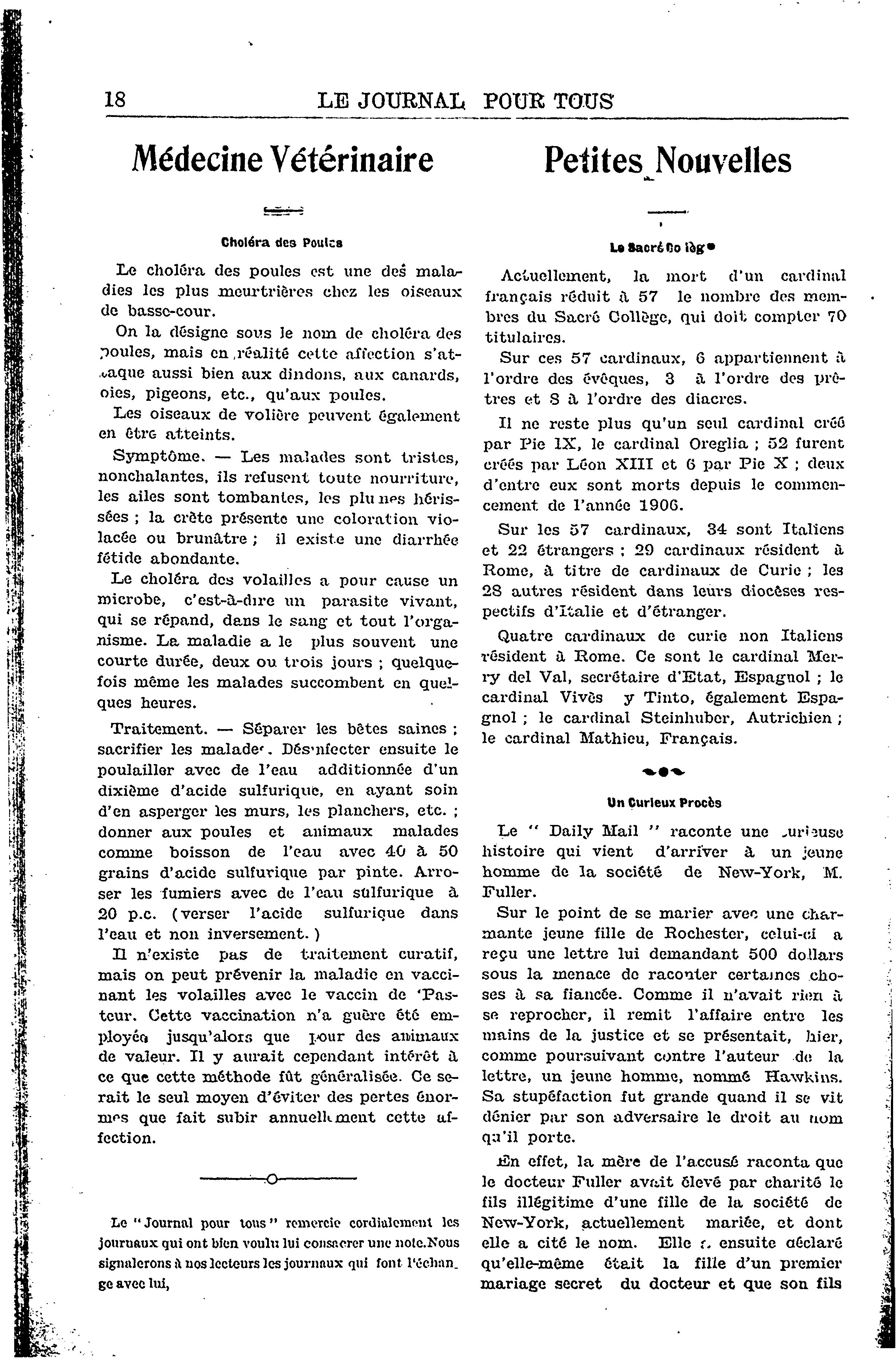 Hebdomadaire, 8 nov. 1906-3 janv. 1907.