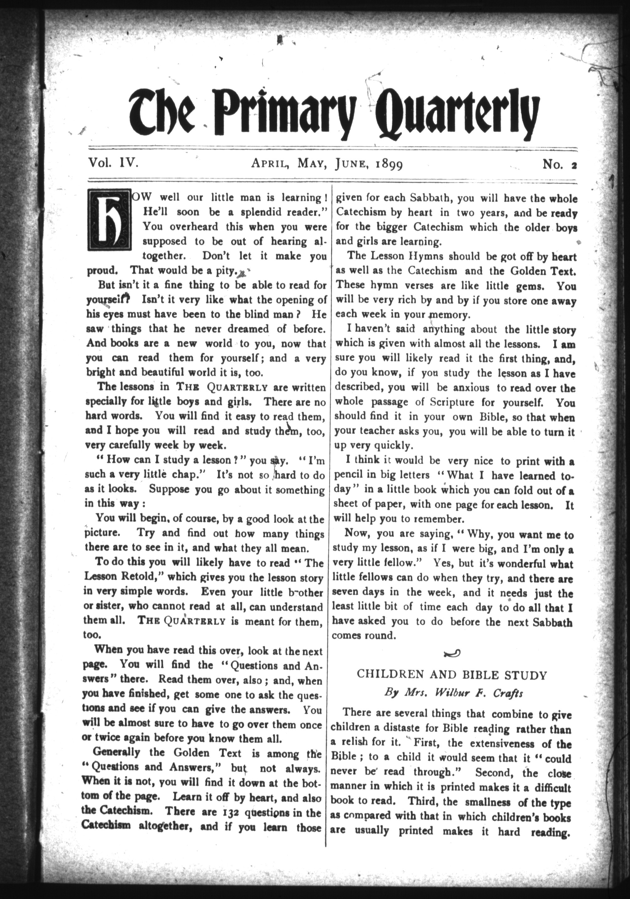 The Primary quarterly : Vol. IV, No. 2 (April/May/June 1899)