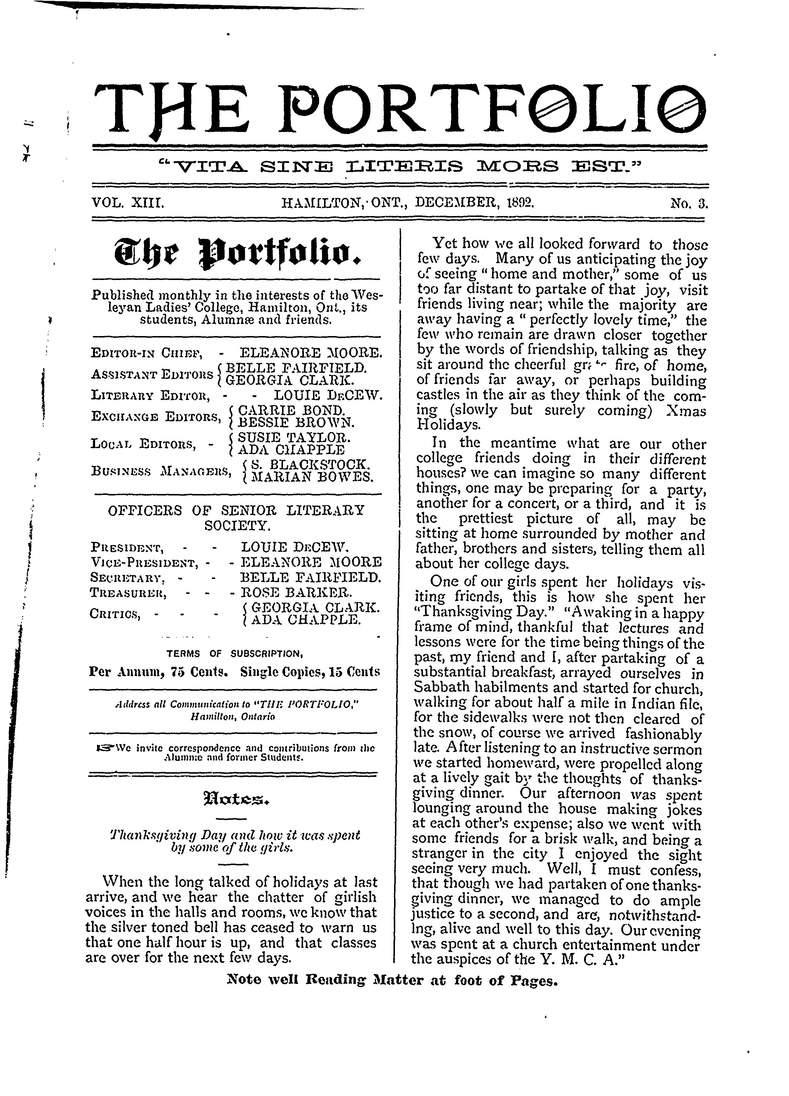 The portfolio : Vol. 13, no. 3 (Dec. 1892)