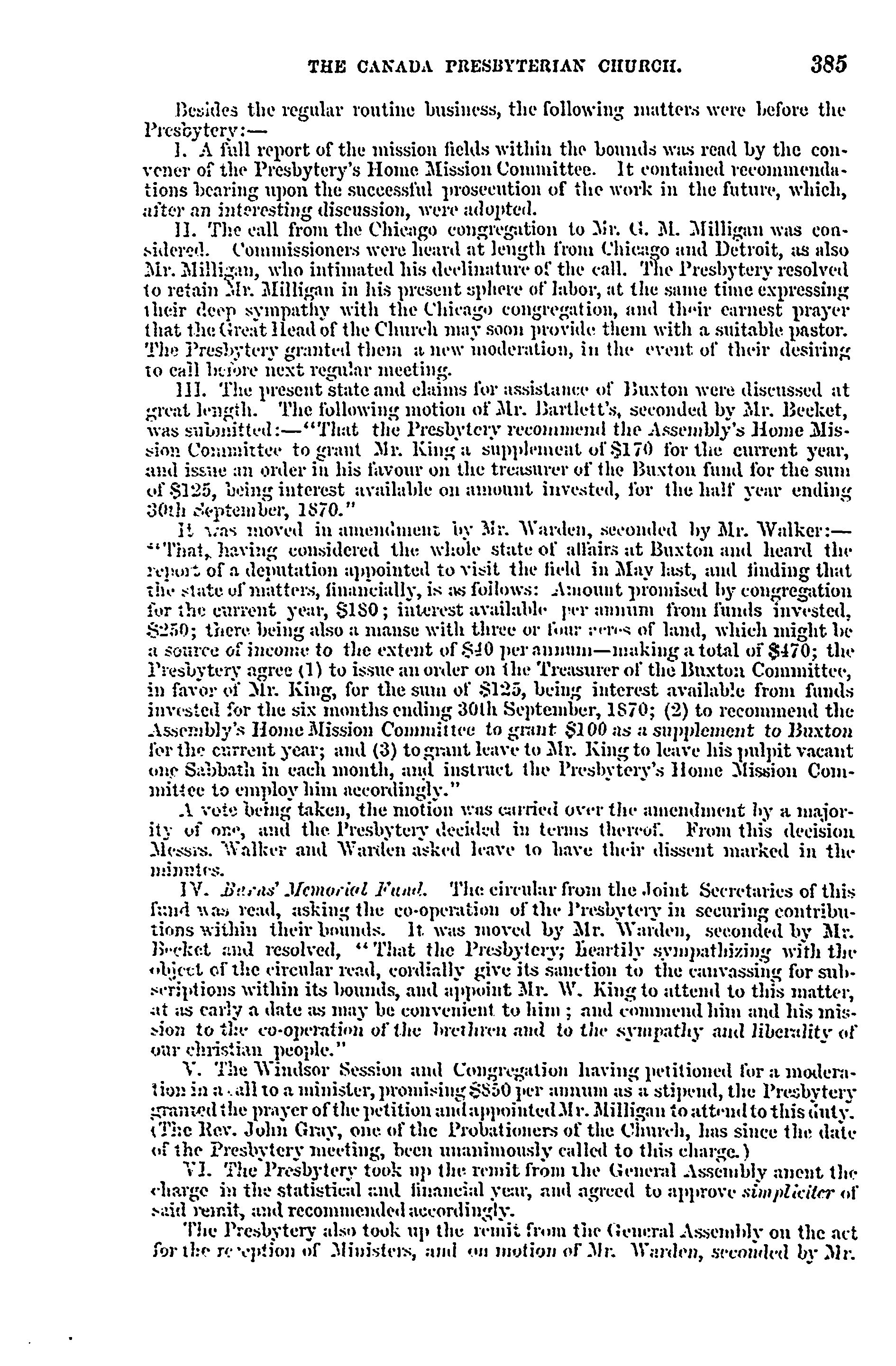 - Presbyterian Church in Canada Archives, Toronto.