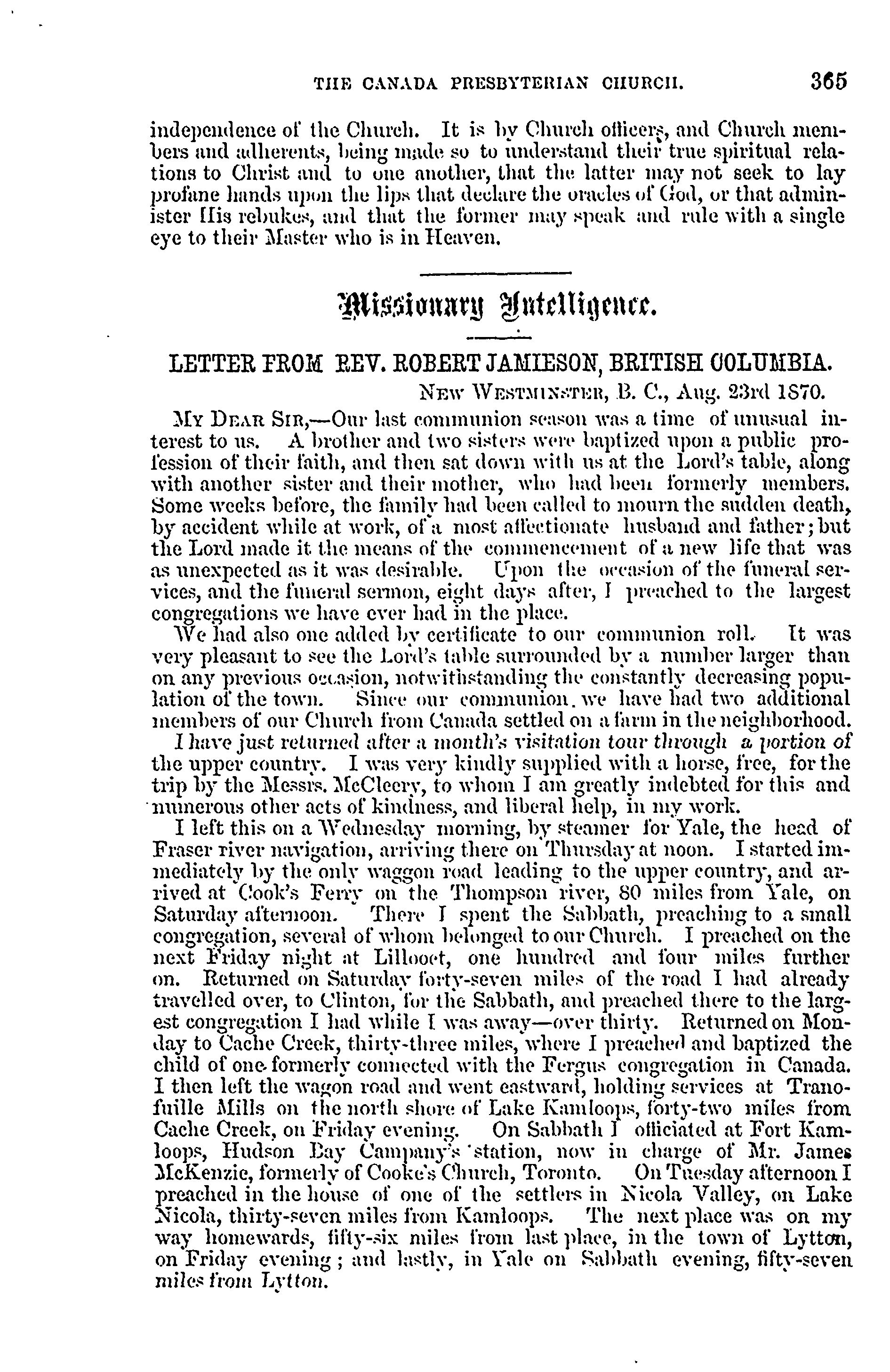 - Presbyterian Church in Canada Archives, Toronto.