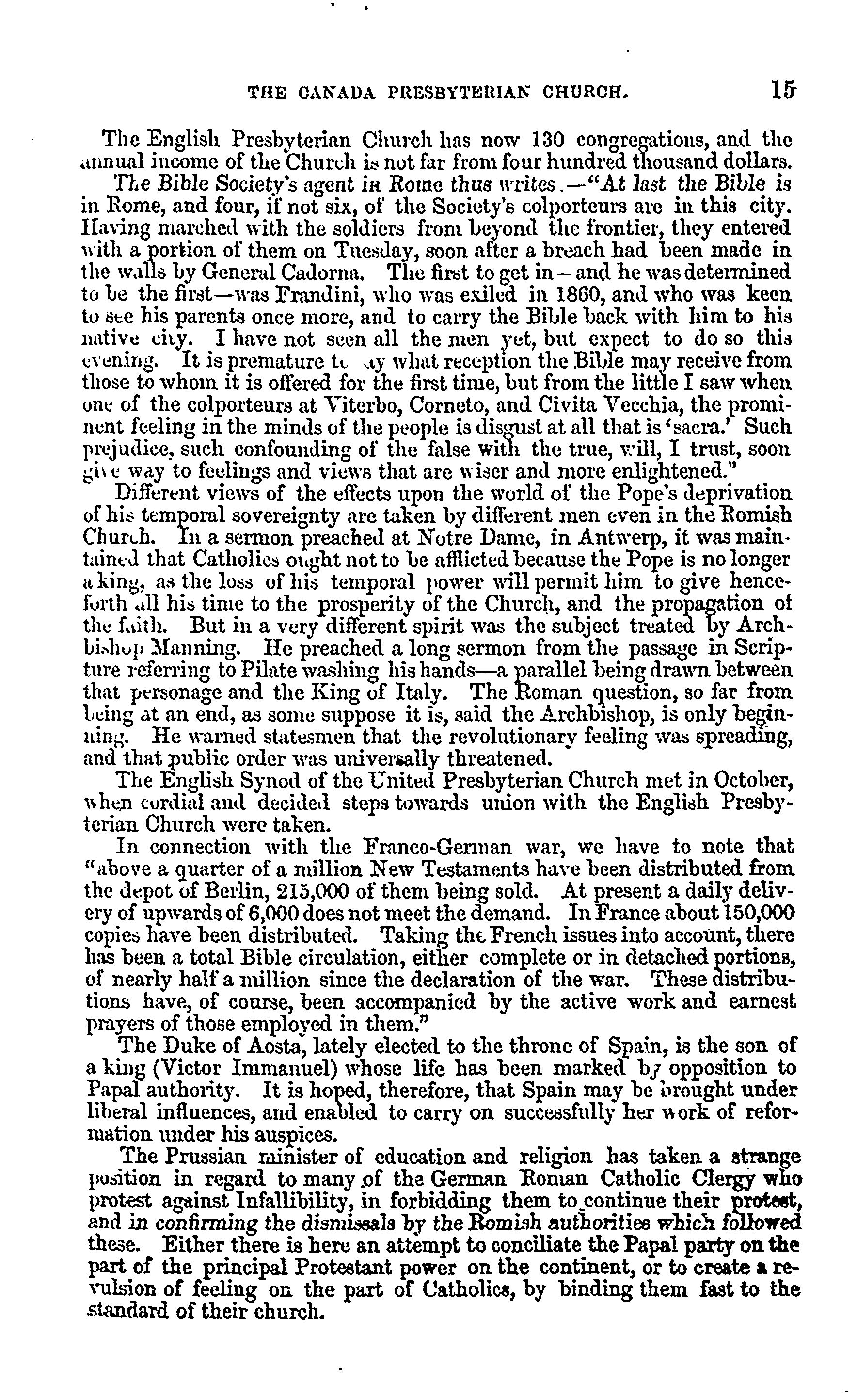 - The home & foreign record of the Canada Presbyterian Church [Vol. 10, no. 1 (Jan. 1871)]