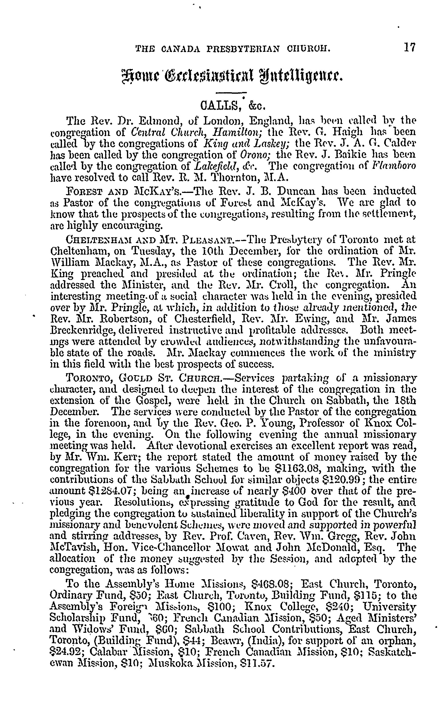 - The home & foreign record of the Canada Presbyterian Church [Vol. 10, no. 1 (Jan. 1871)]