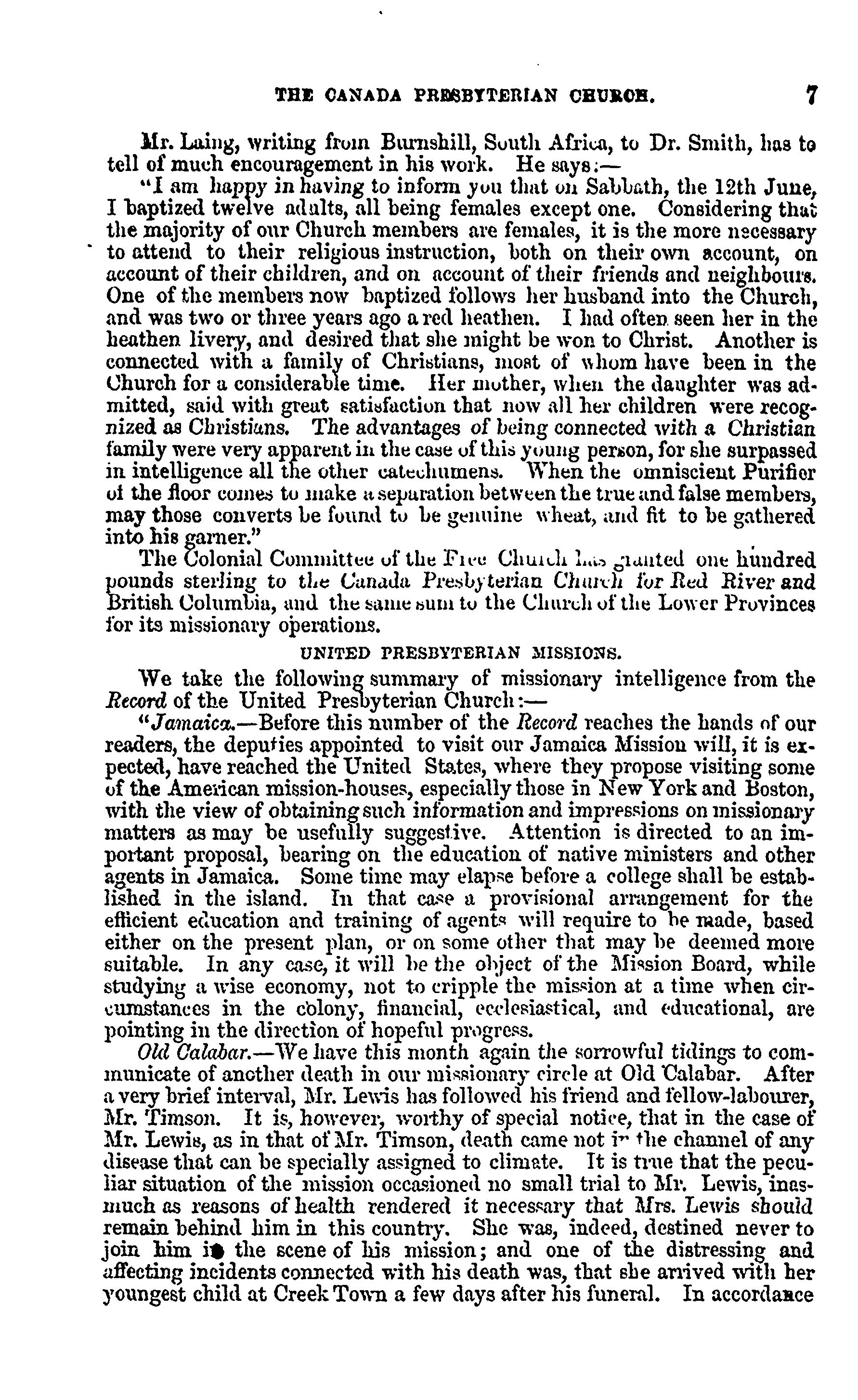 The home & foreign record of the Canada Presbyterian Church [Vol. 10, no. 1 (Jan. 1871)]