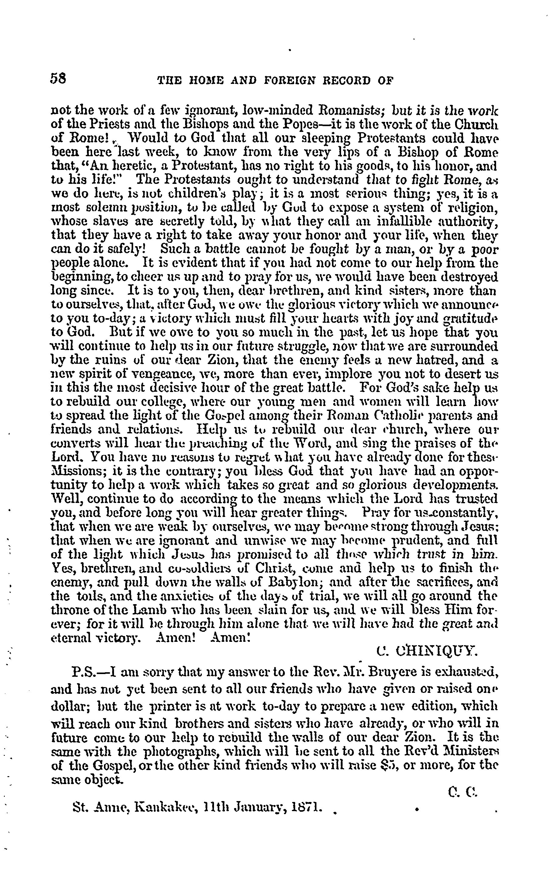 - The home & foreign record of the Canada Presbyterian Church [Vol. 10, no. 2 (Feb. 1871)]
