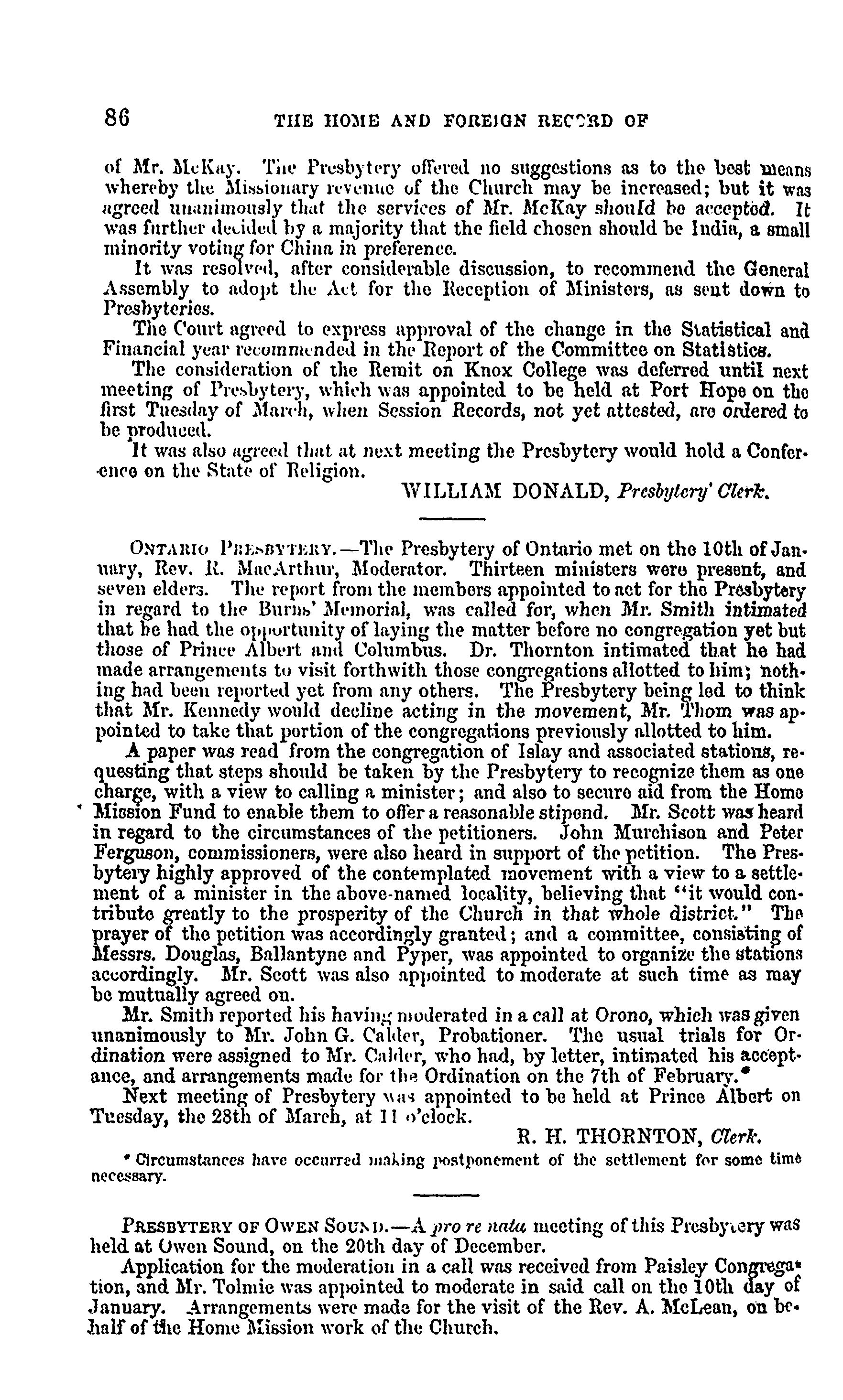 - Presbyterian Church in Canada Archives, Toronto.