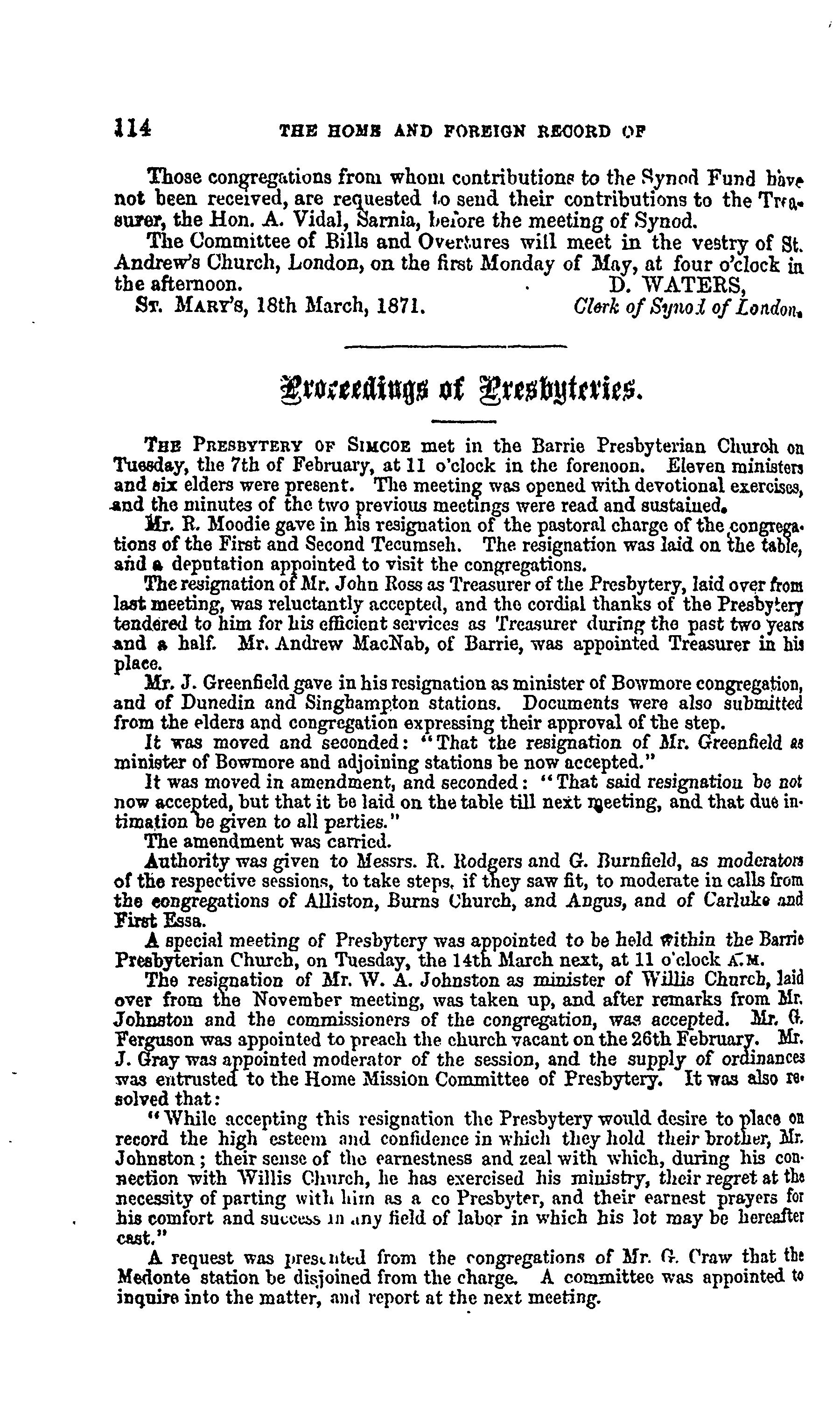 - The home & foreign record of the Canada Presbyterian Church [Vol. 10, no. 4 (Apr. 1871)]
