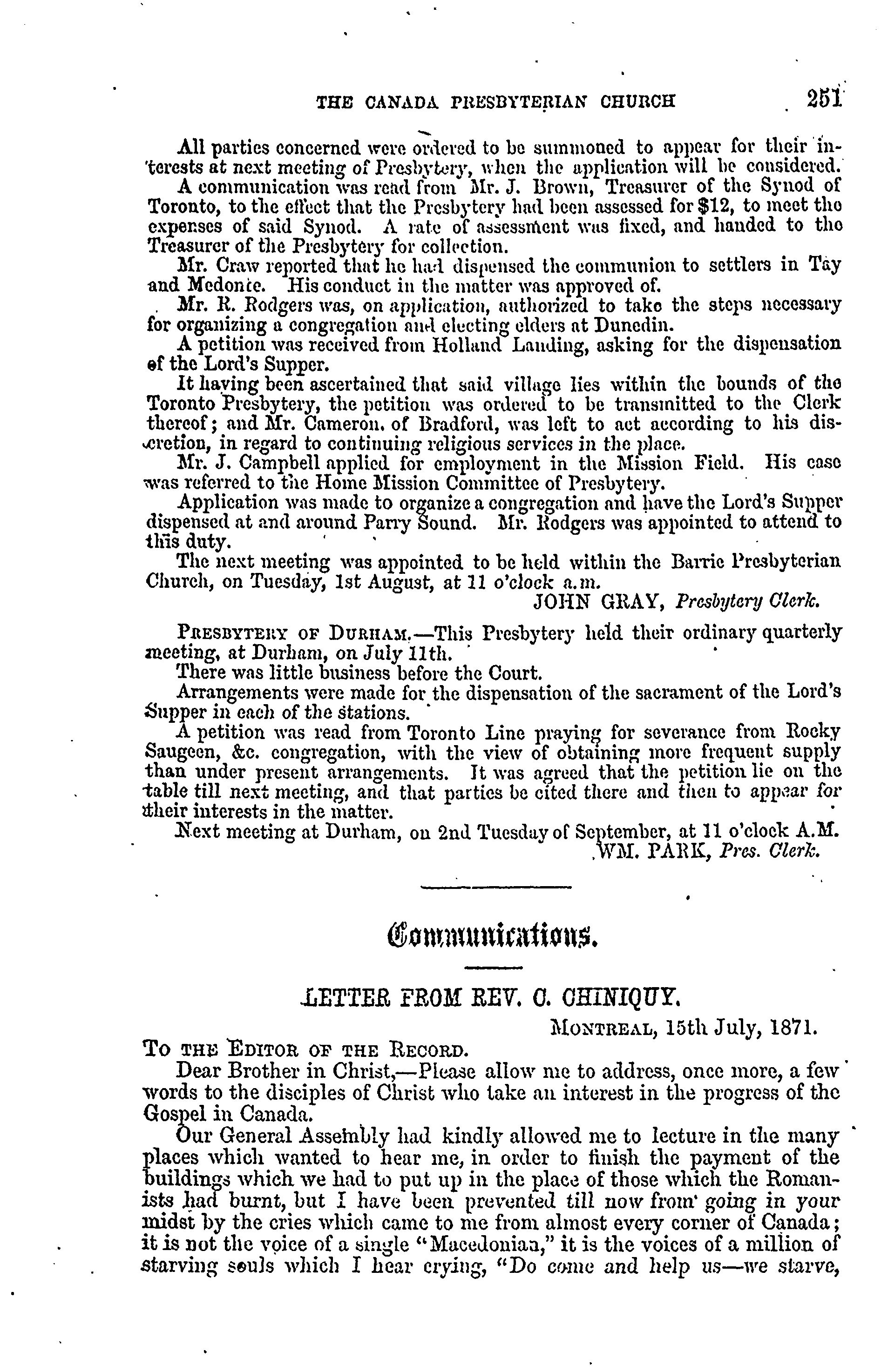- Presbyterian Church in Canada Archives, Toronto.