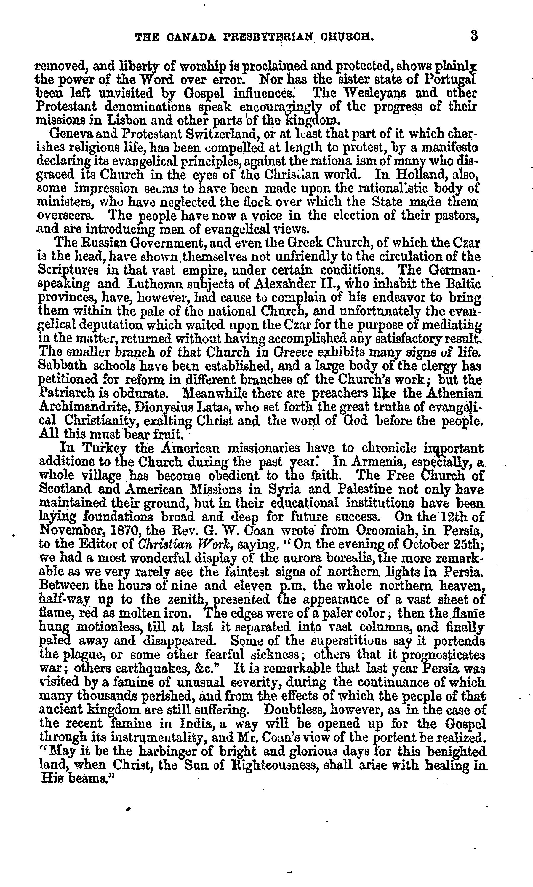 - Presbyterian Church in Canada Archives, Toronto.