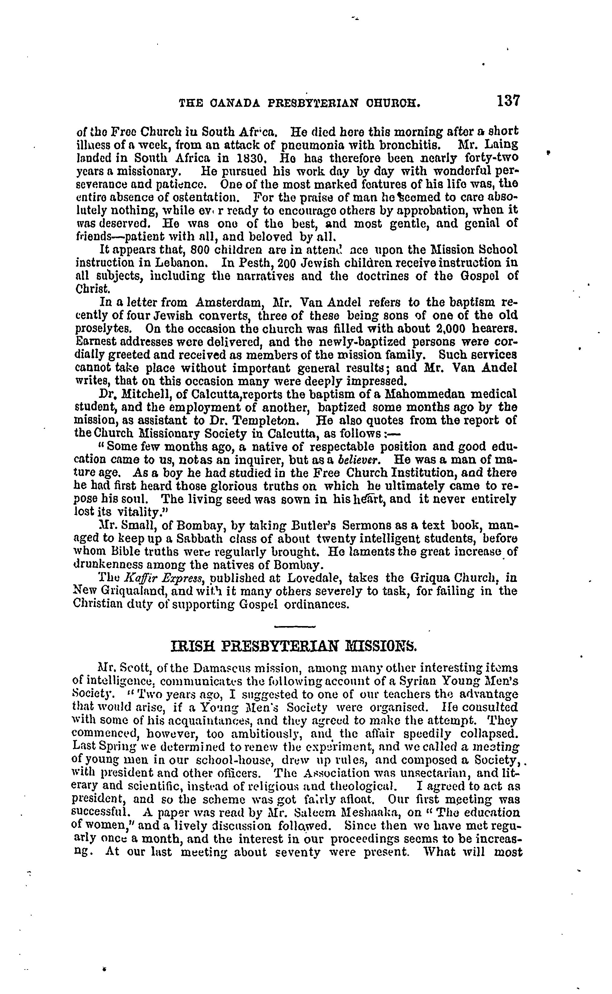 The home & foreign record of the Canada Presbyterian Church [Vol. 11, no. 5 (May 1872)]
