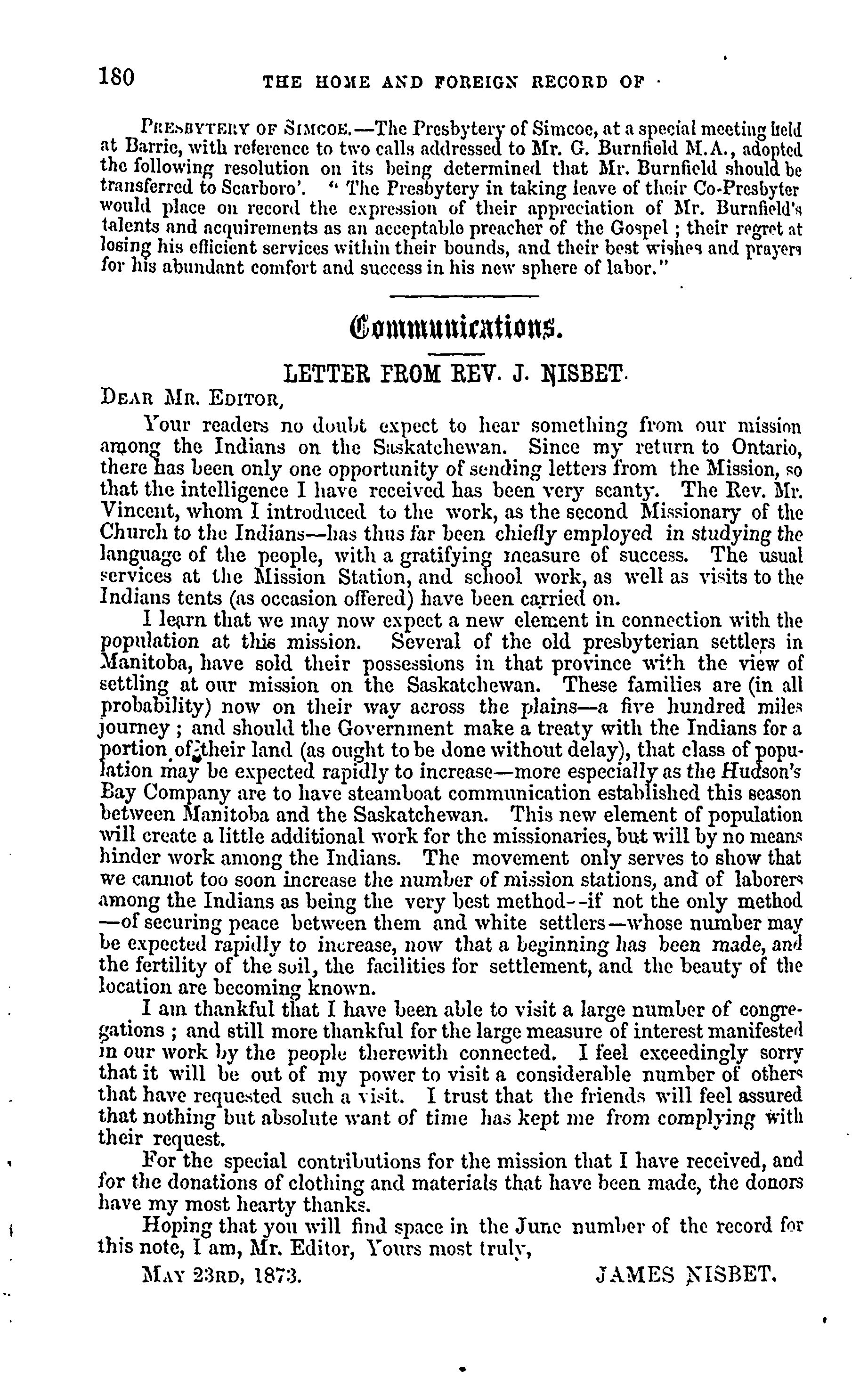 The home & foreign record of the Canada Presbyterian Church [Vol. 12, no. 6 (June 1873)]