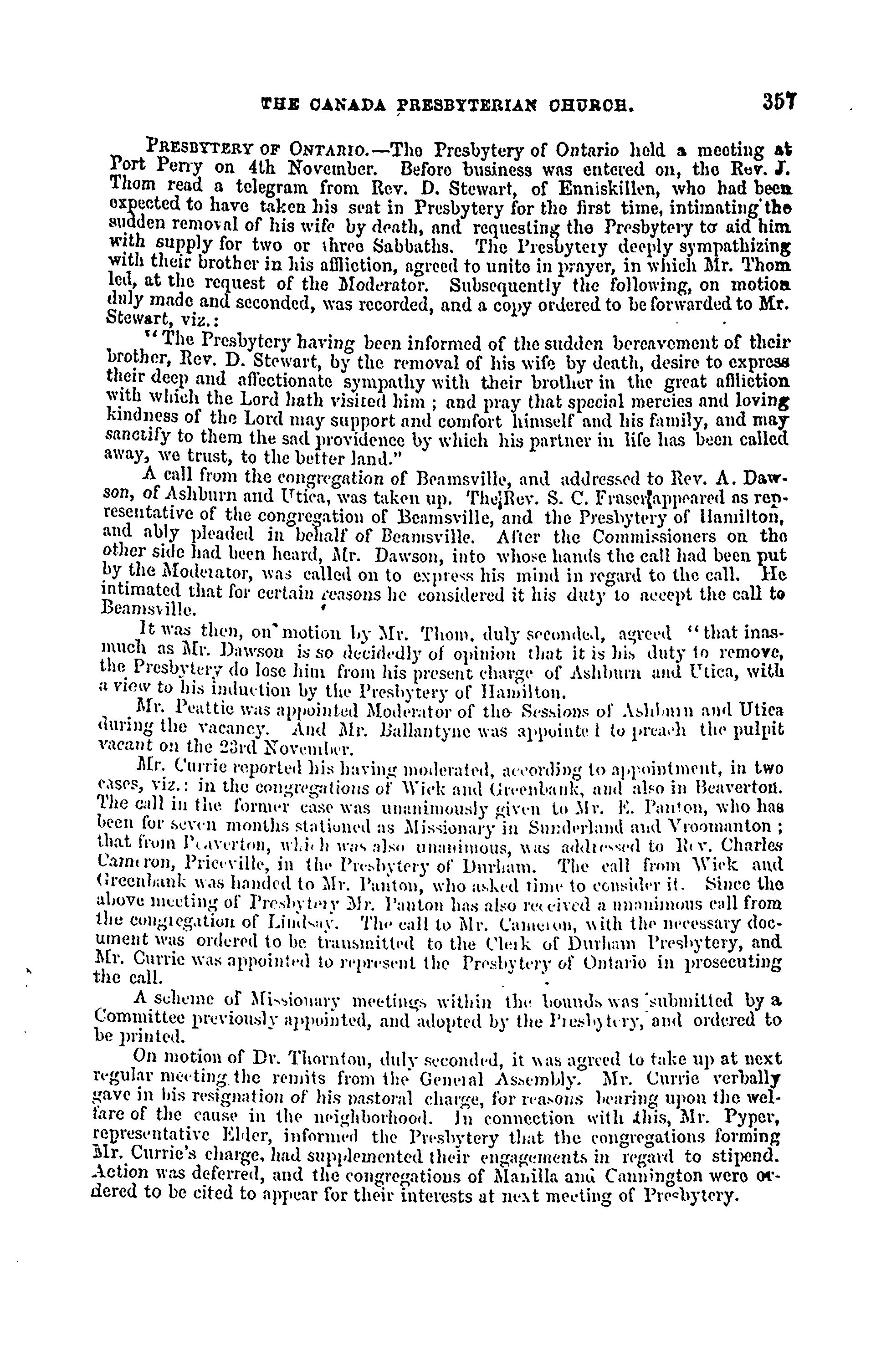 - Presbyterian Church in Canada Archives, Toronto.