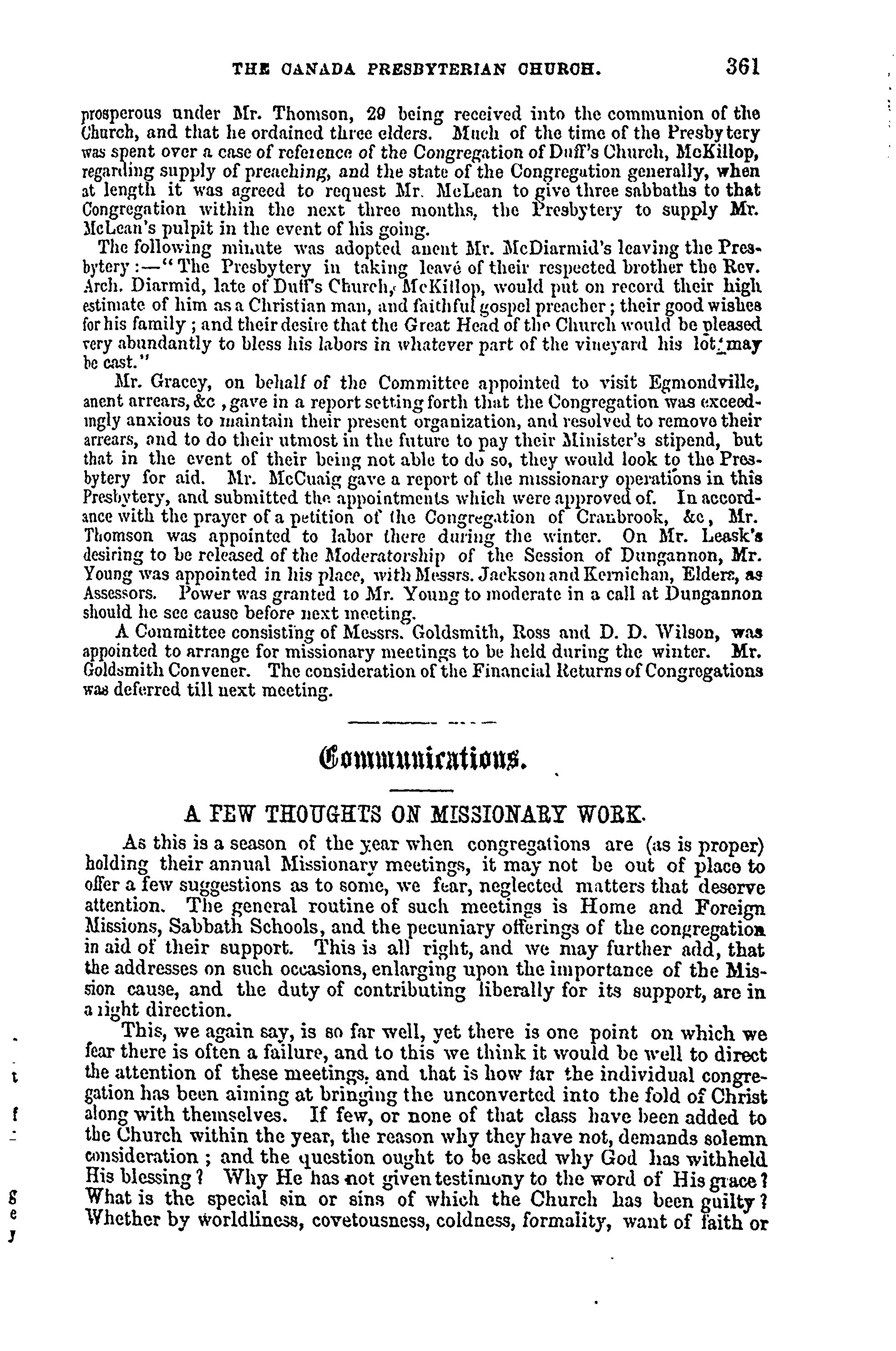 - Presbyterian Church in Canada Archives, Toronto.