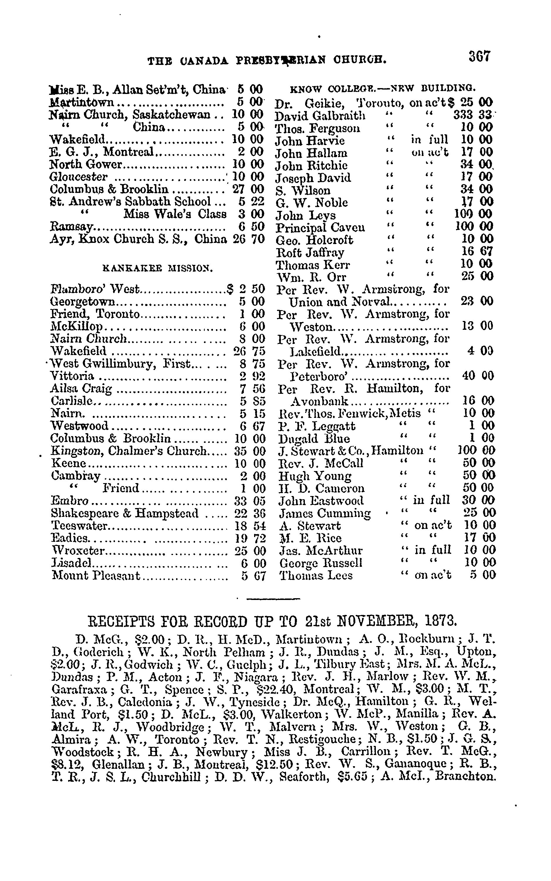 - Presbyterian Church in Canada Archives, Toronto.