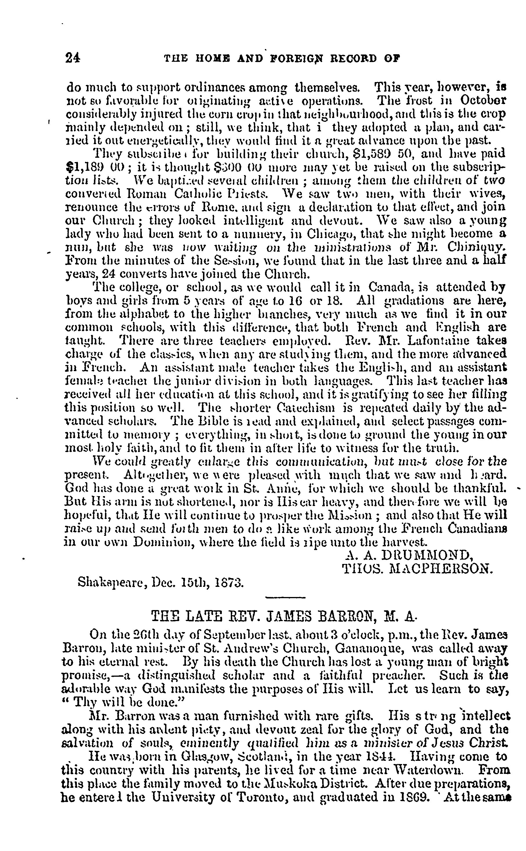 Toronto : Printed for the Committee by the Presbyterian Print. House, [1874?]; 33 images avec recherche en texte intégral