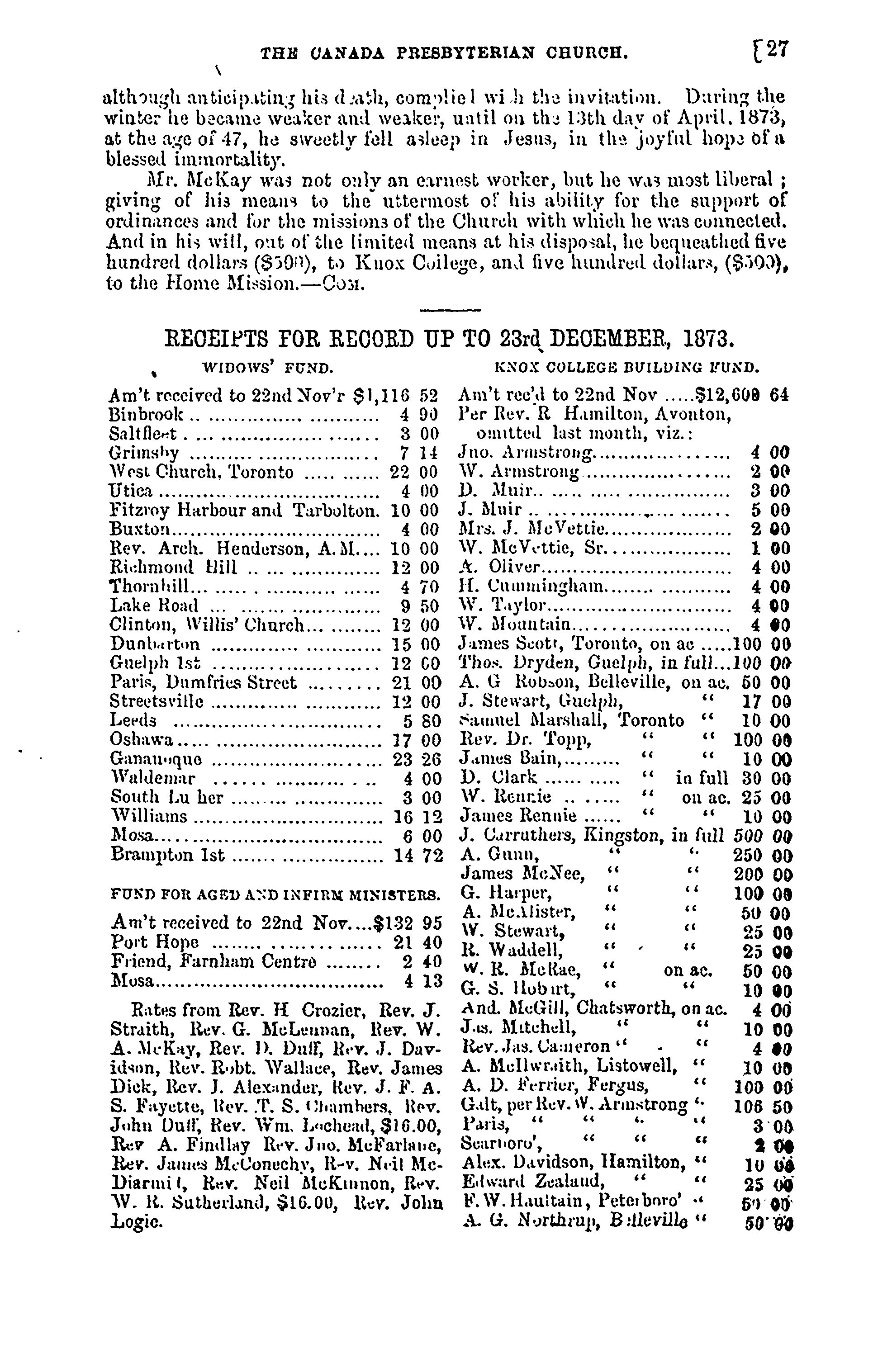 - The home & foreign record of the Canada Presbyterian Church [Vol. 13, no. 1 (Jan. 1874)]