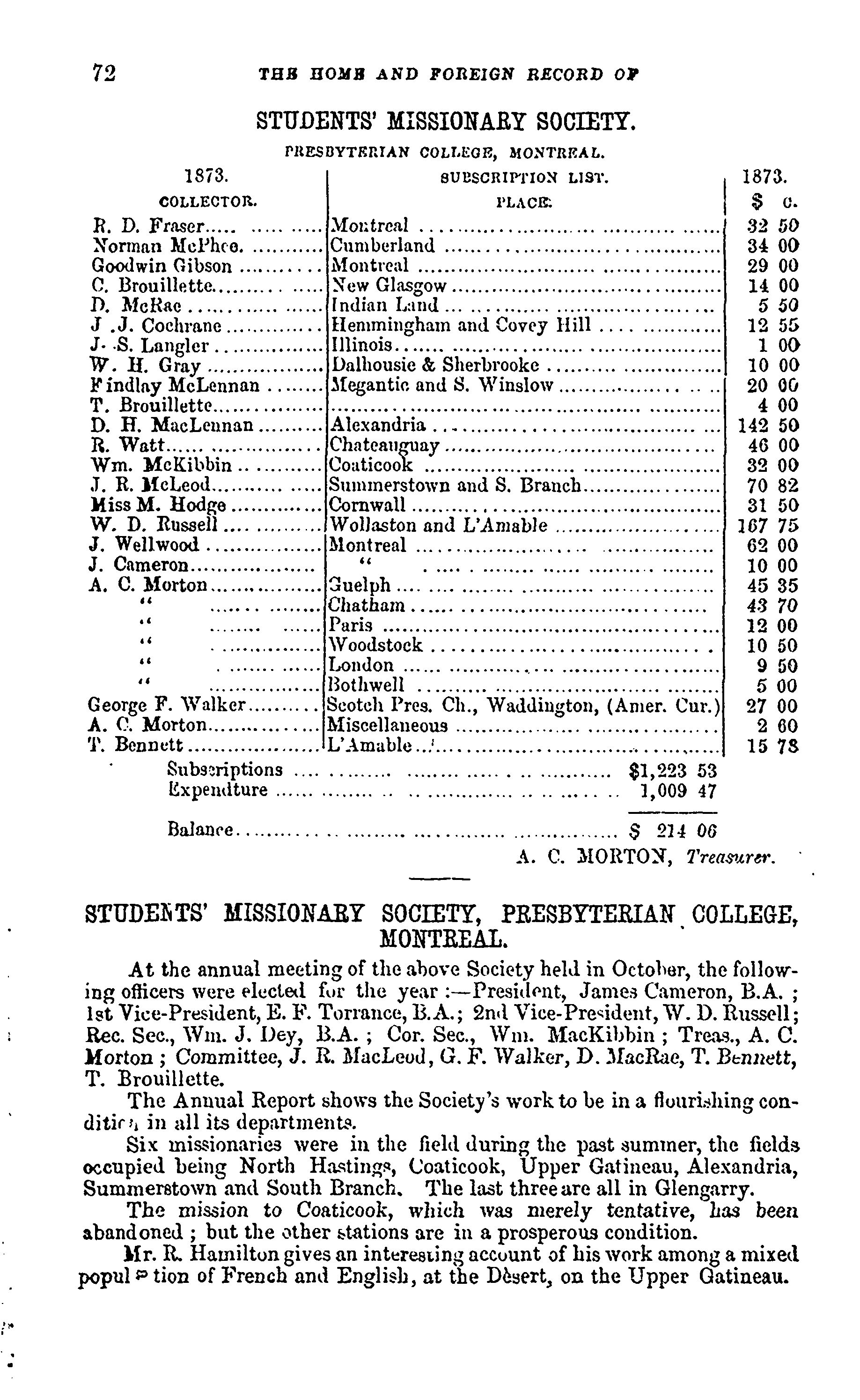 [Toronto : Printed for the Committee by the Presbyterian Print. House, 1874]