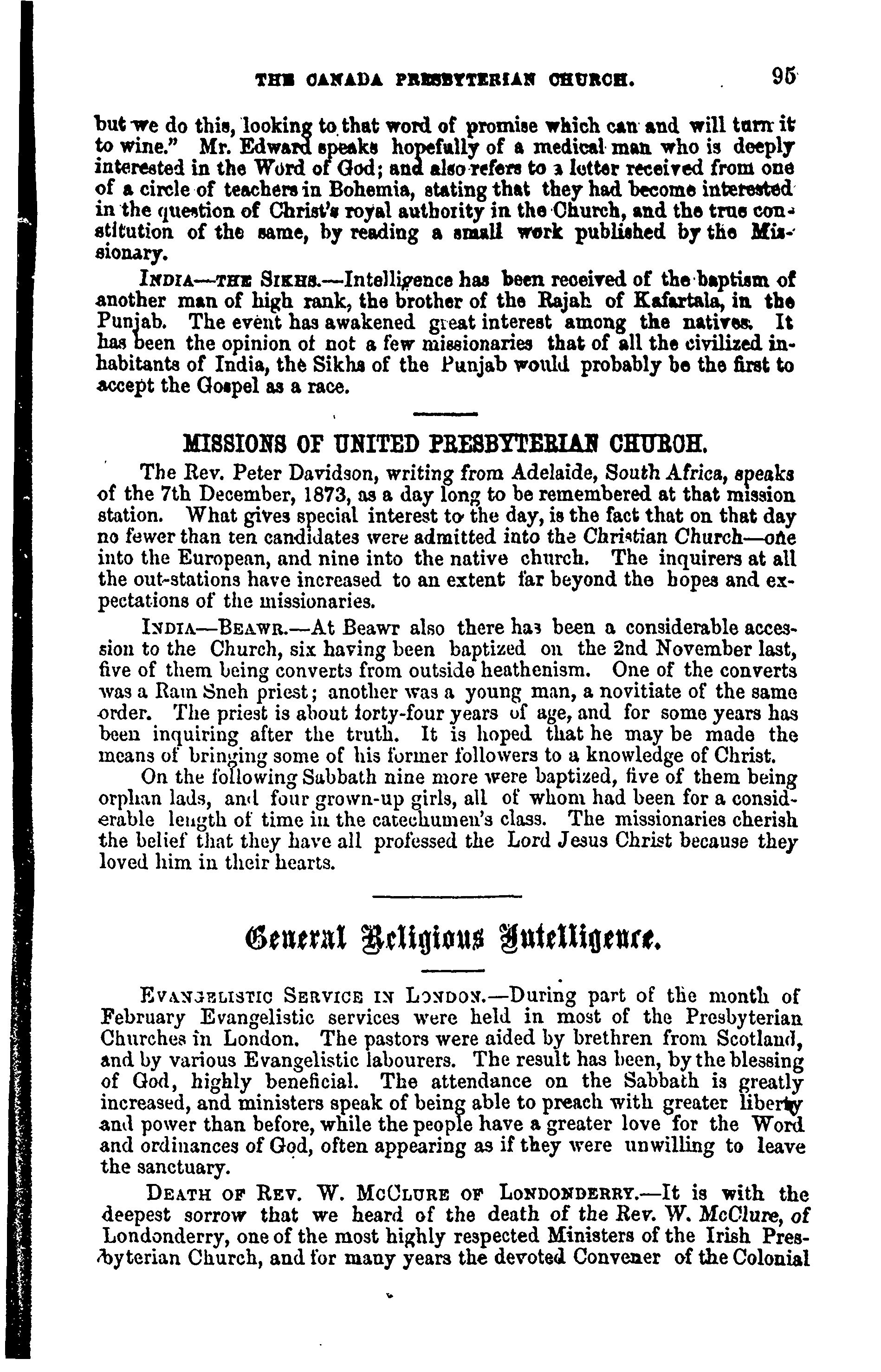 - The home & foreign record of the Canada Presbyterian Church [Vol. 13, no. 4 (Apr. 1874)]