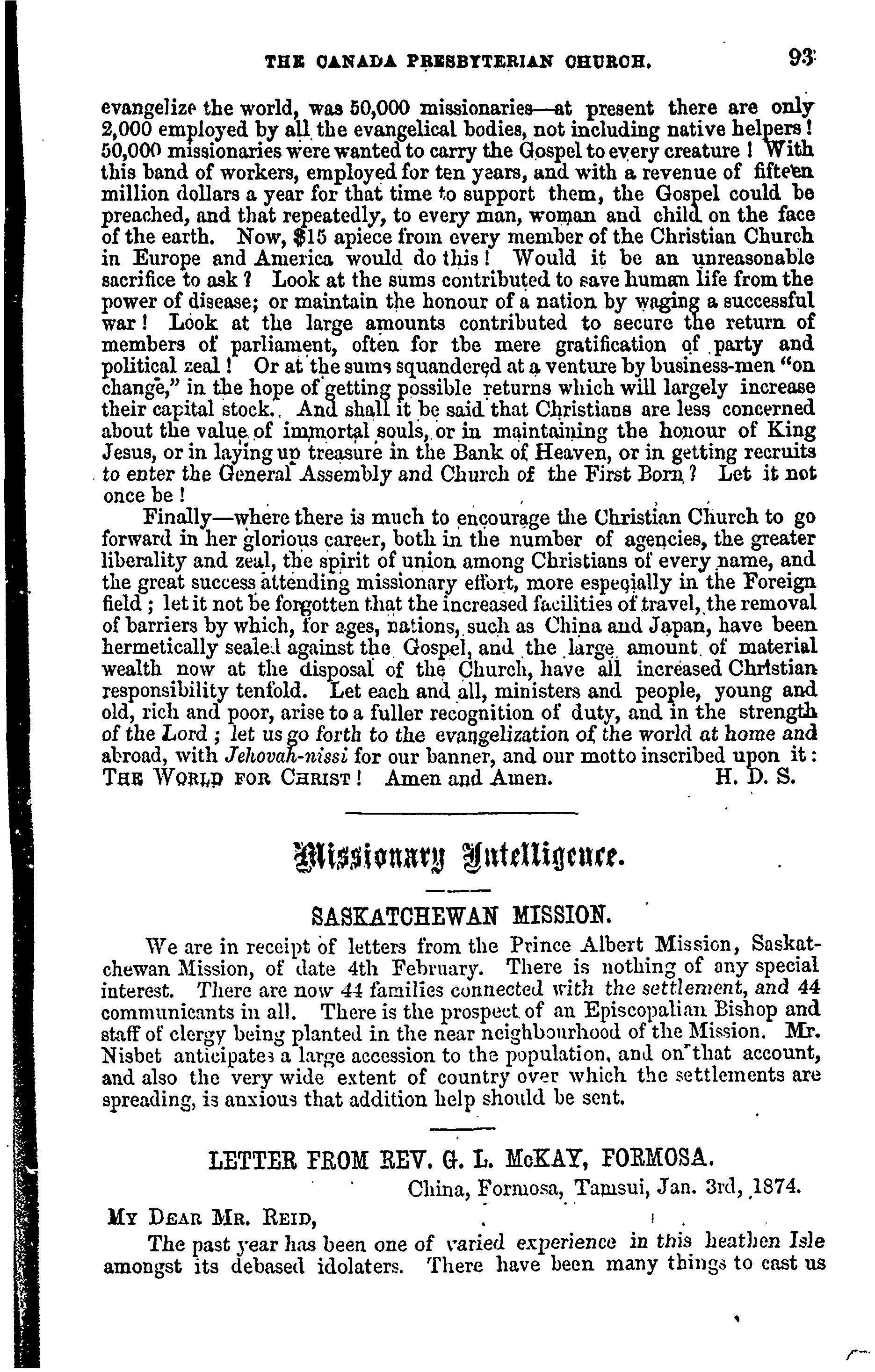 - The home & foreign record of the Canada Presbyterian Church [Vol. 13, no. 4 (Apr. 1874)]