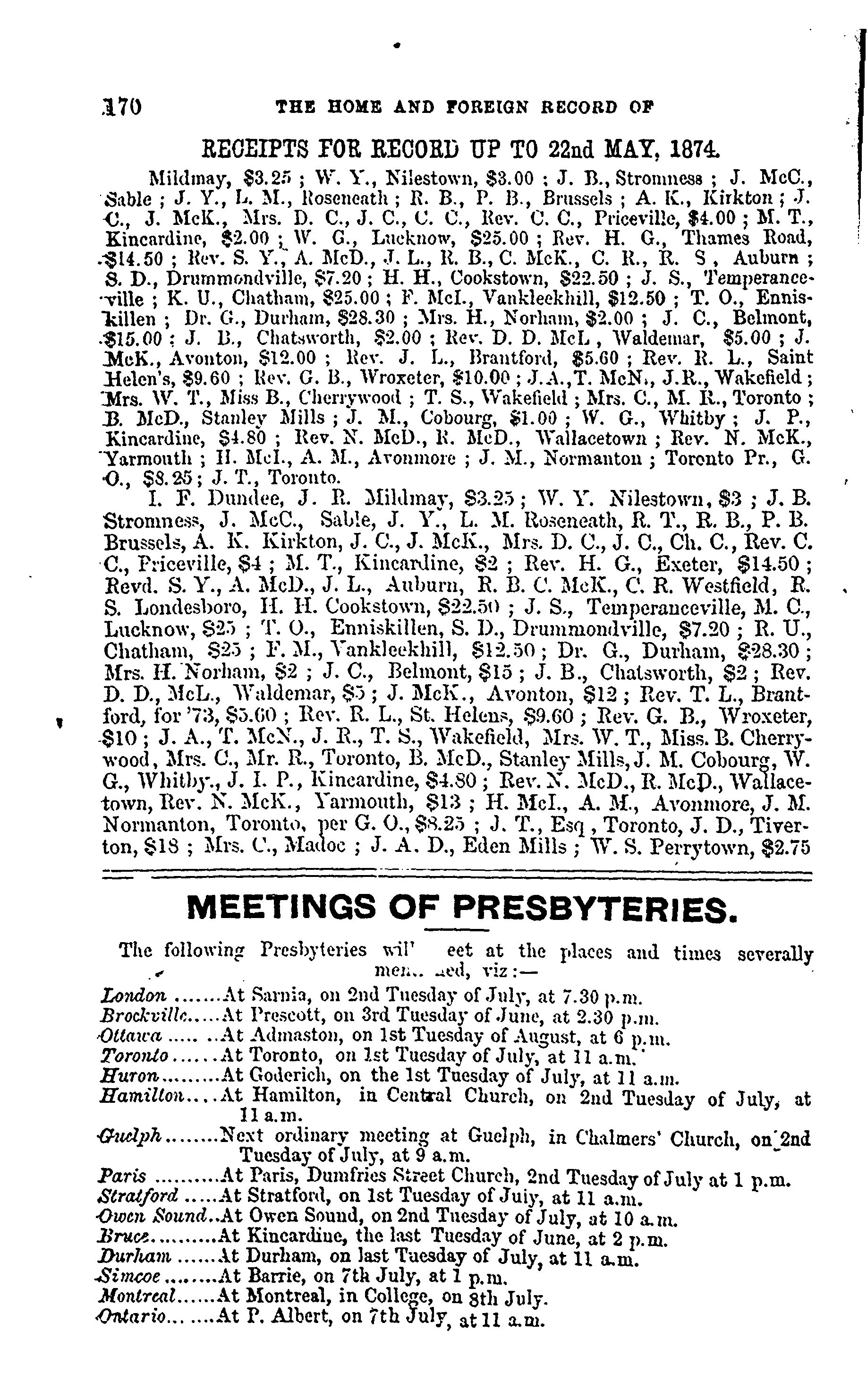 [Toronto : Printed for the Committee by the Presbyterian Print. House, 1874]