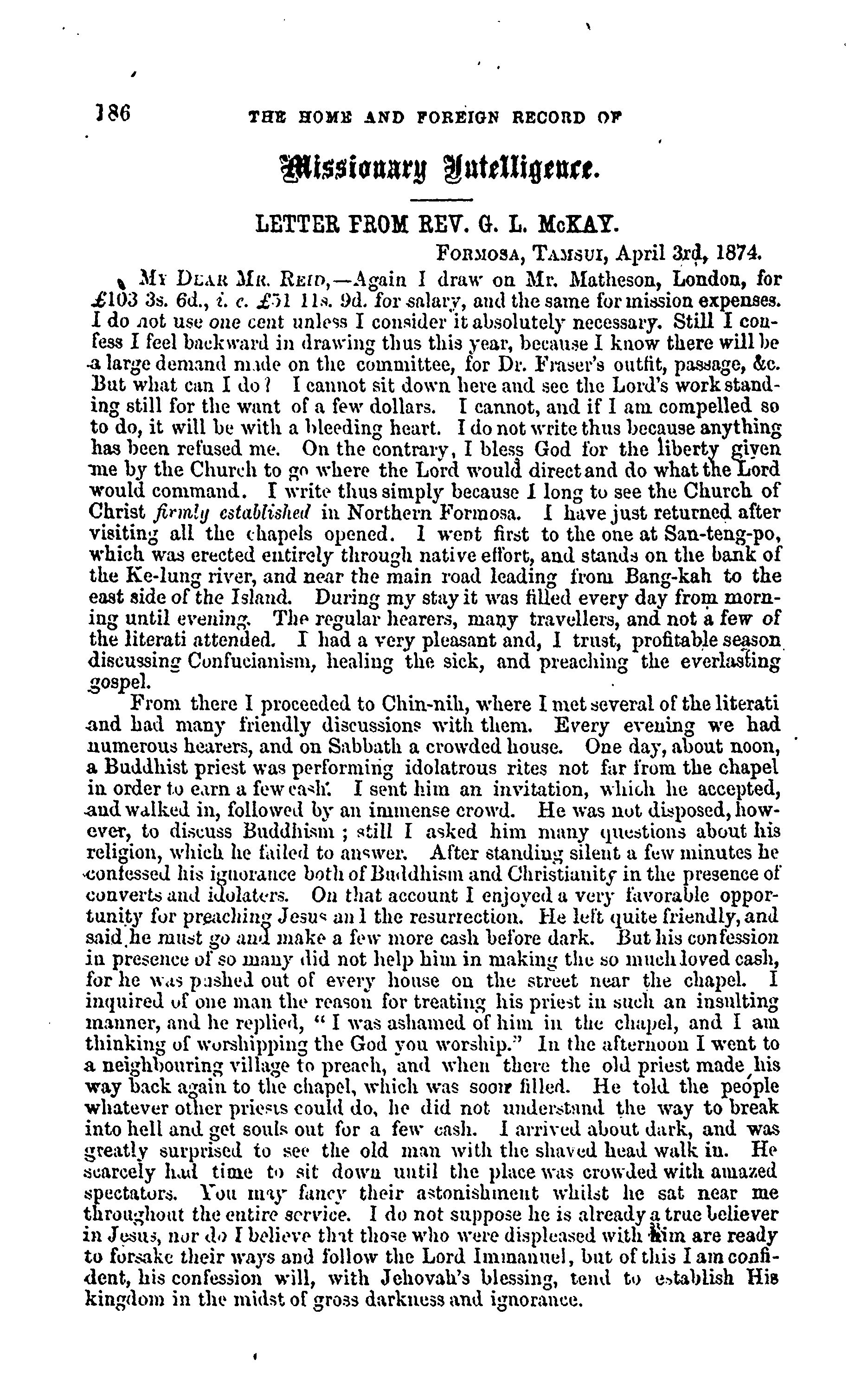 - The home & foreign record of the Canada Presbyterian Church [Vol. 13, no. 7 (July 1874)]