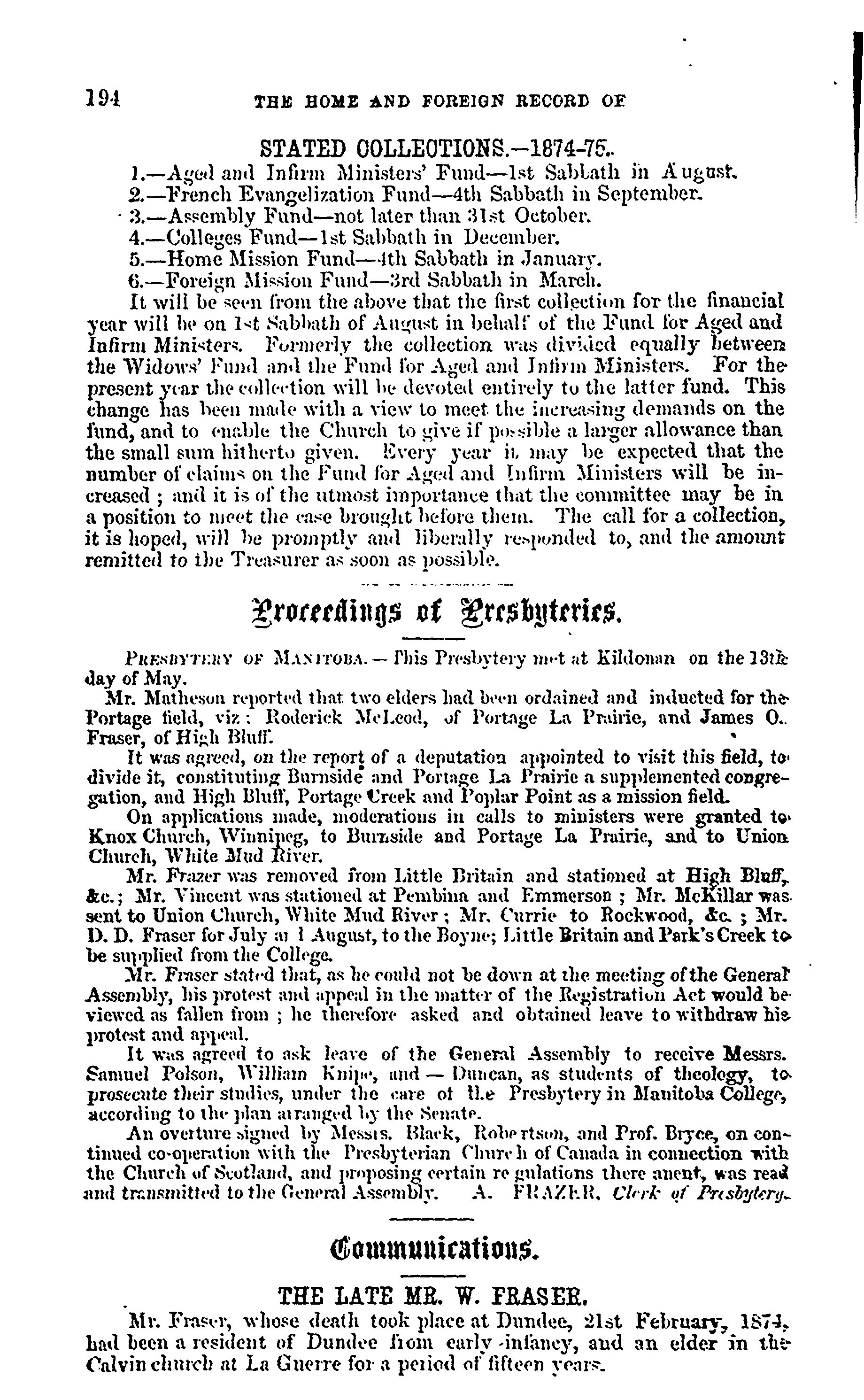[Toronto : Printed for the Committee by the Presbyterian Print. House, 1874]
