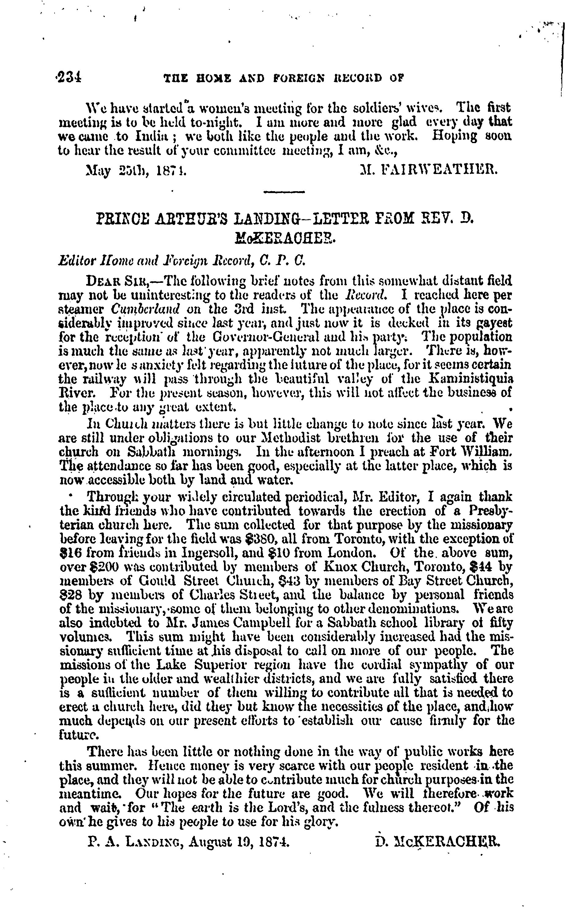 [Toronto : Printed for the Committee by the Presbyterian Print. House, 1874]