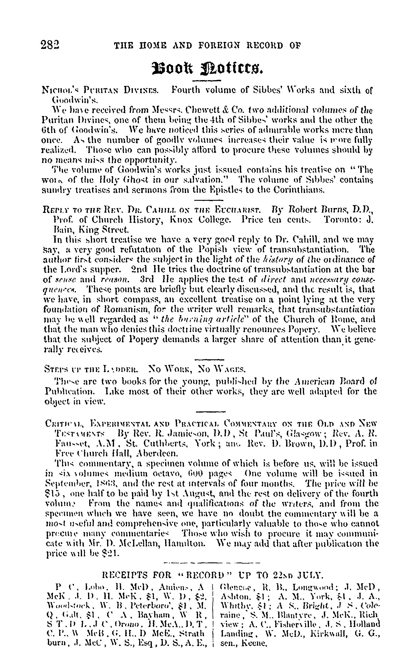 - The home and foreign record of the Canada Presbyterian Church [Vol. 2, no. 10 (Aug. 1863)]