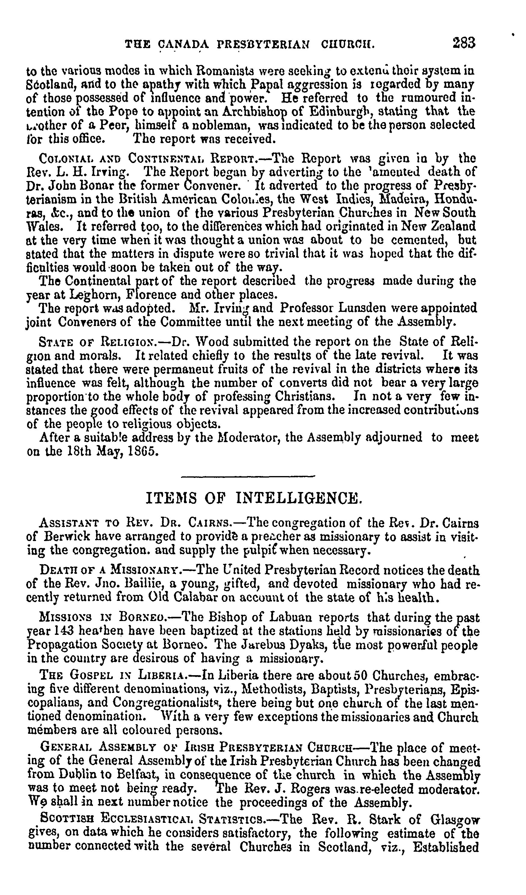- The home and foreign record of the Canada Presbyterian Church [Vol. 4 [i.e. 3], no. 10 (Aug. 1864)]