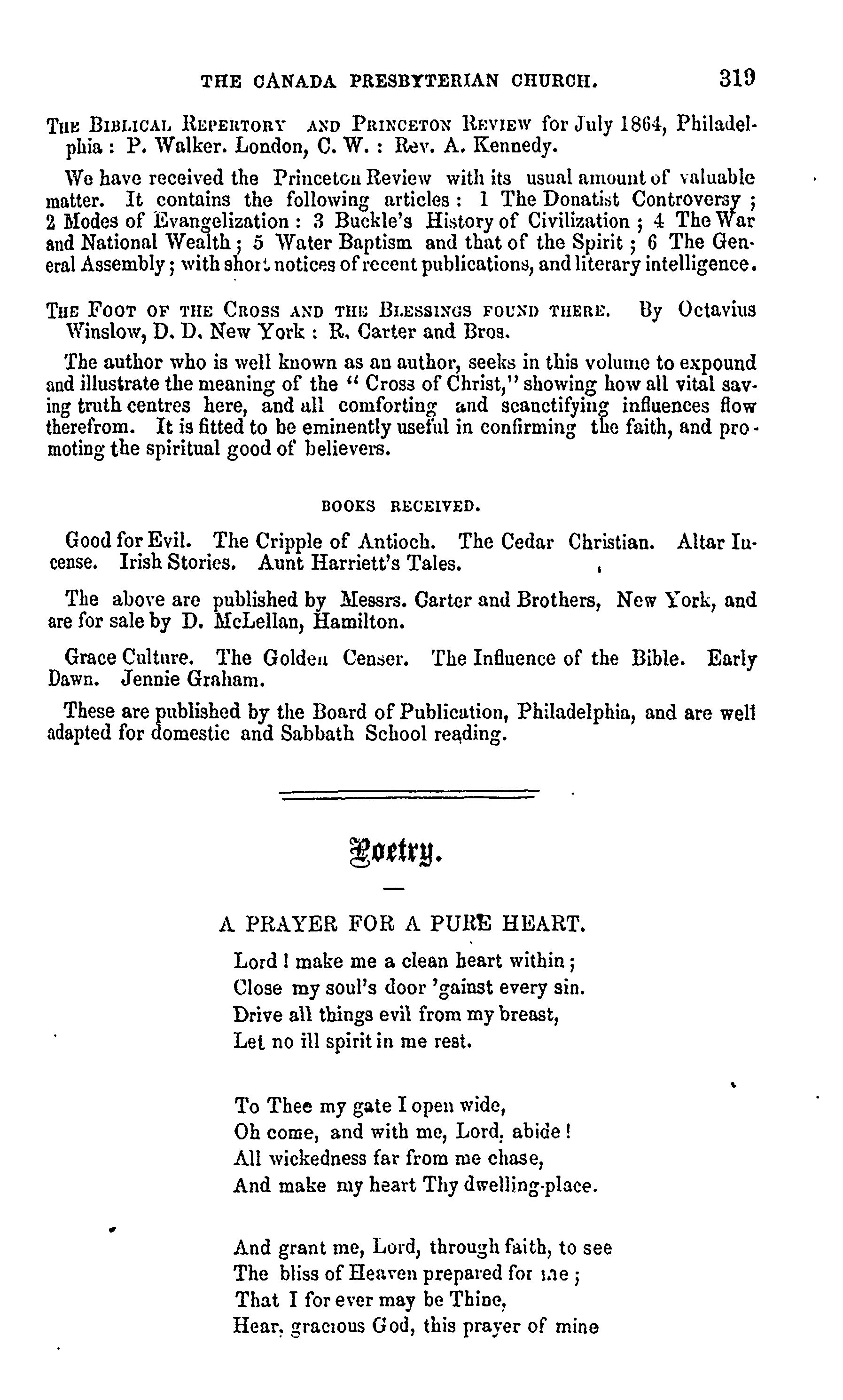 - The home and foreign record of the Canada Presbyterian Church [Vol. 4 [i.e. 3], no. 11 (Sept. 1864)]