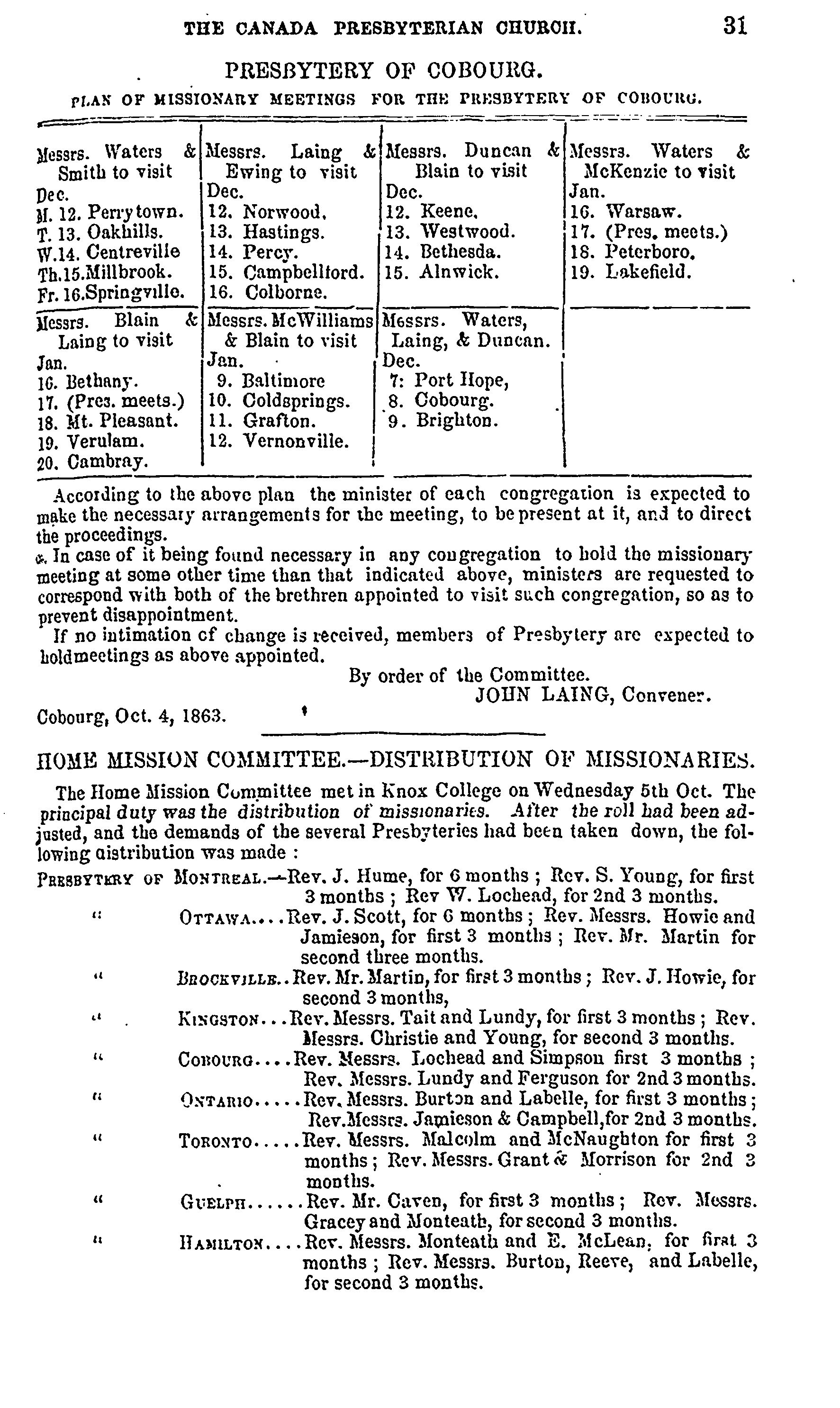 The home and foreign record of the Canada Presbyterian Church [Vol. 4, no. 1 (Nov. 1864)]