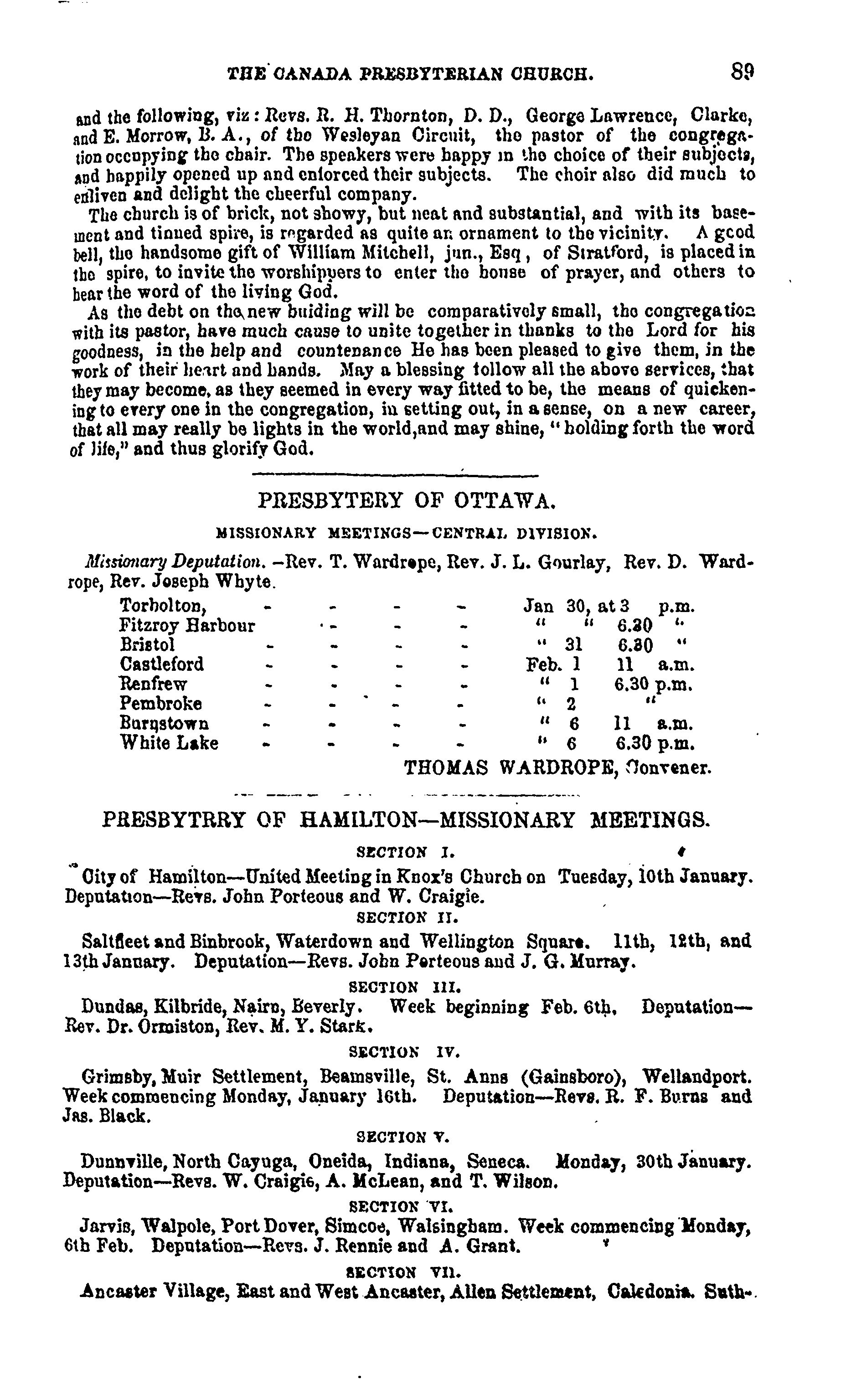 - Presbyterian Church in Canada Archives, Toronto.