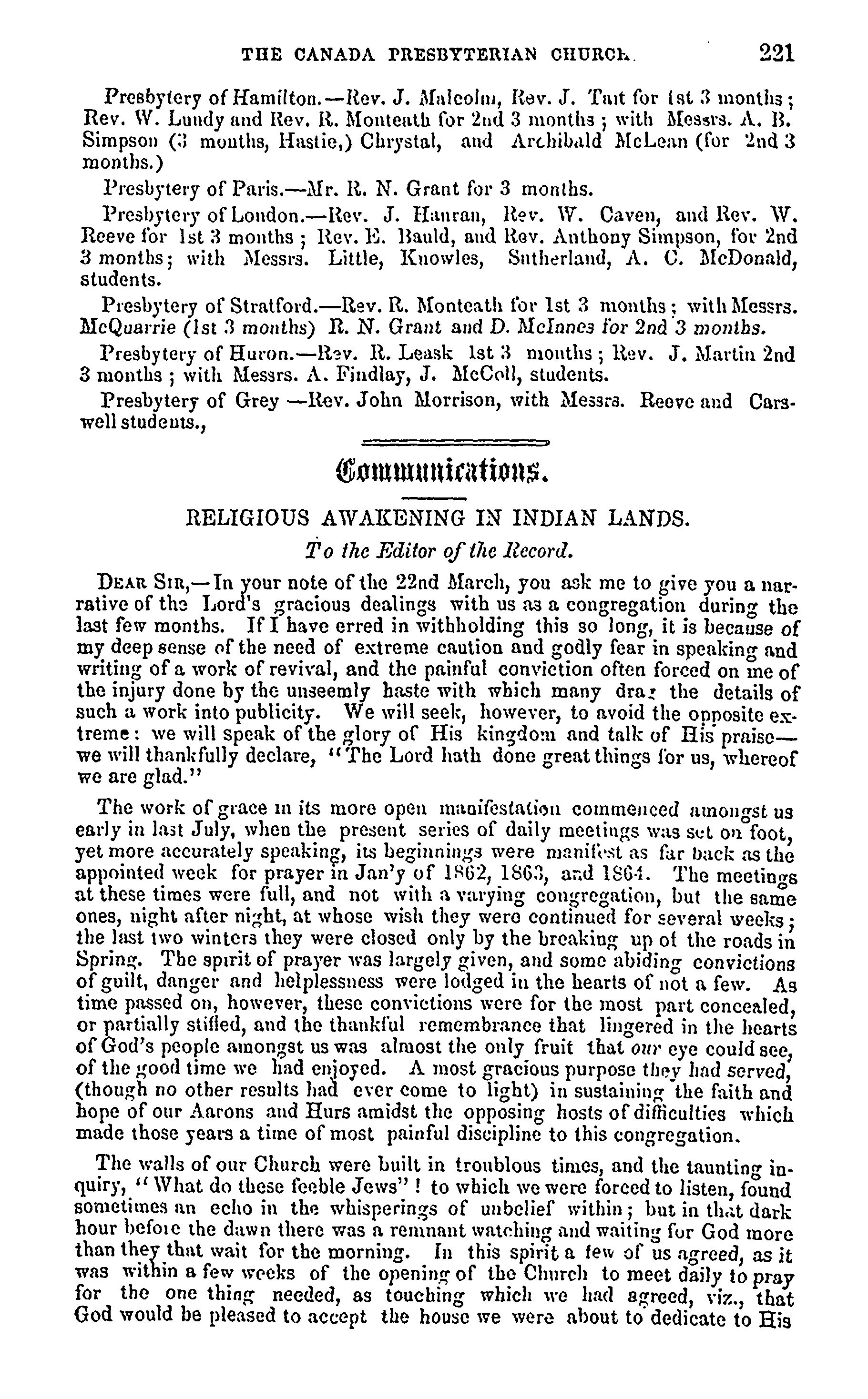 - The home and foreign record of the Canada Presbyterian Church [Vol. 4, no. 8 [i.e. 7] (May 1865)]