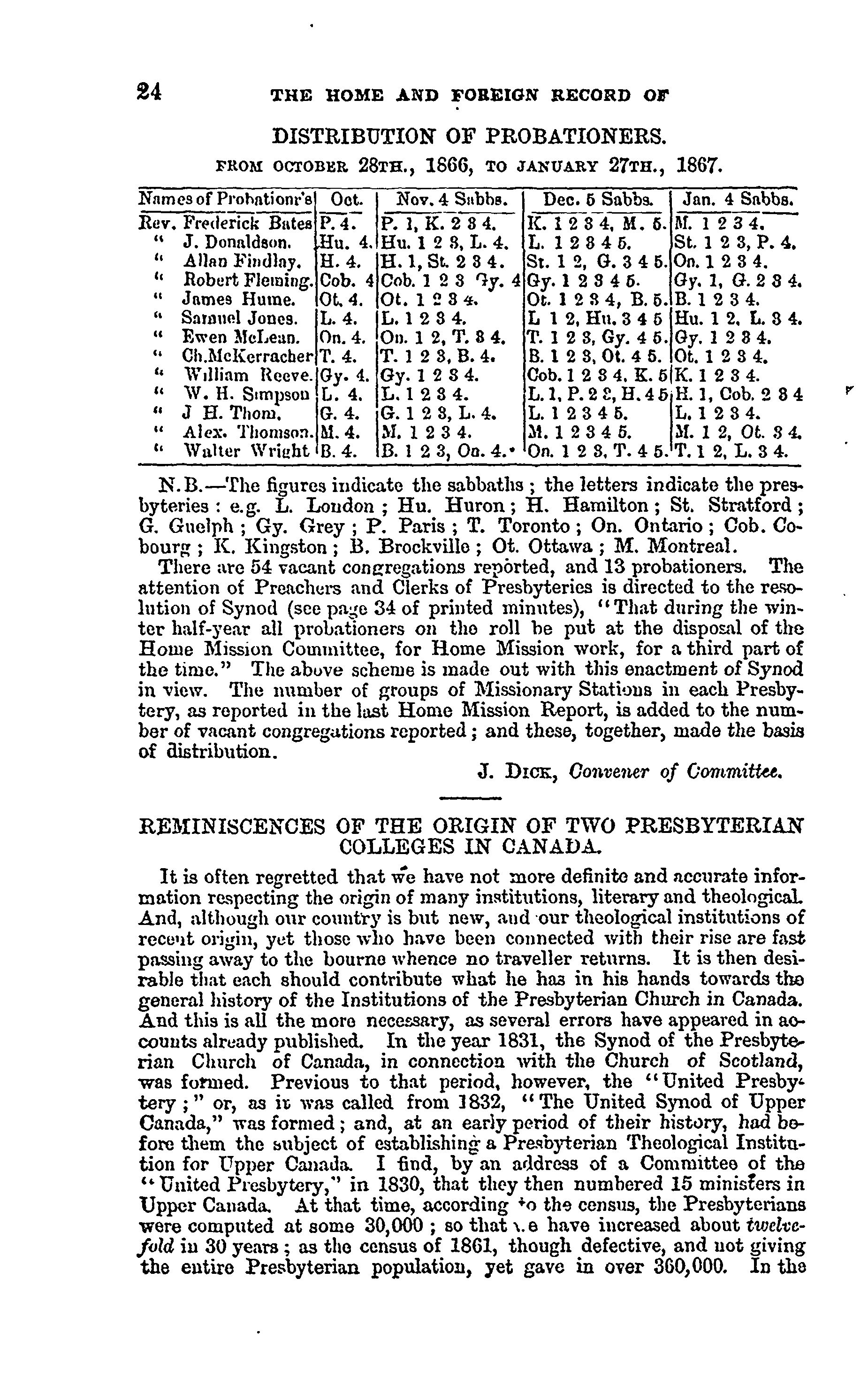 - The home and foreign record of the Canada Presbyterian Church [Vol. 6, no. 1 (Nov. 1866)]