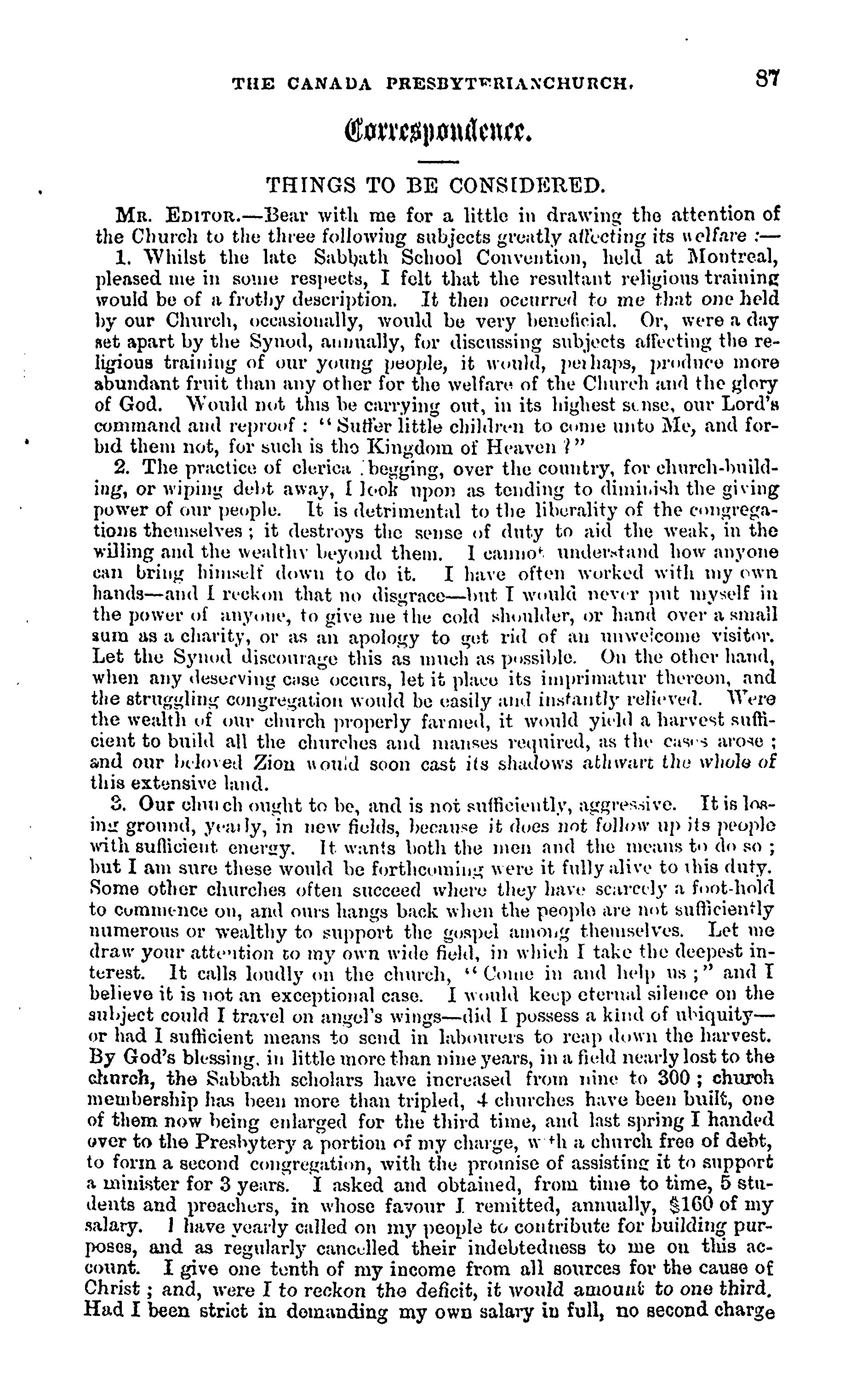 The home & foreign record of the Canada Presbyterian Church [Vol. 6, no. 3 (Jan. 1867)]