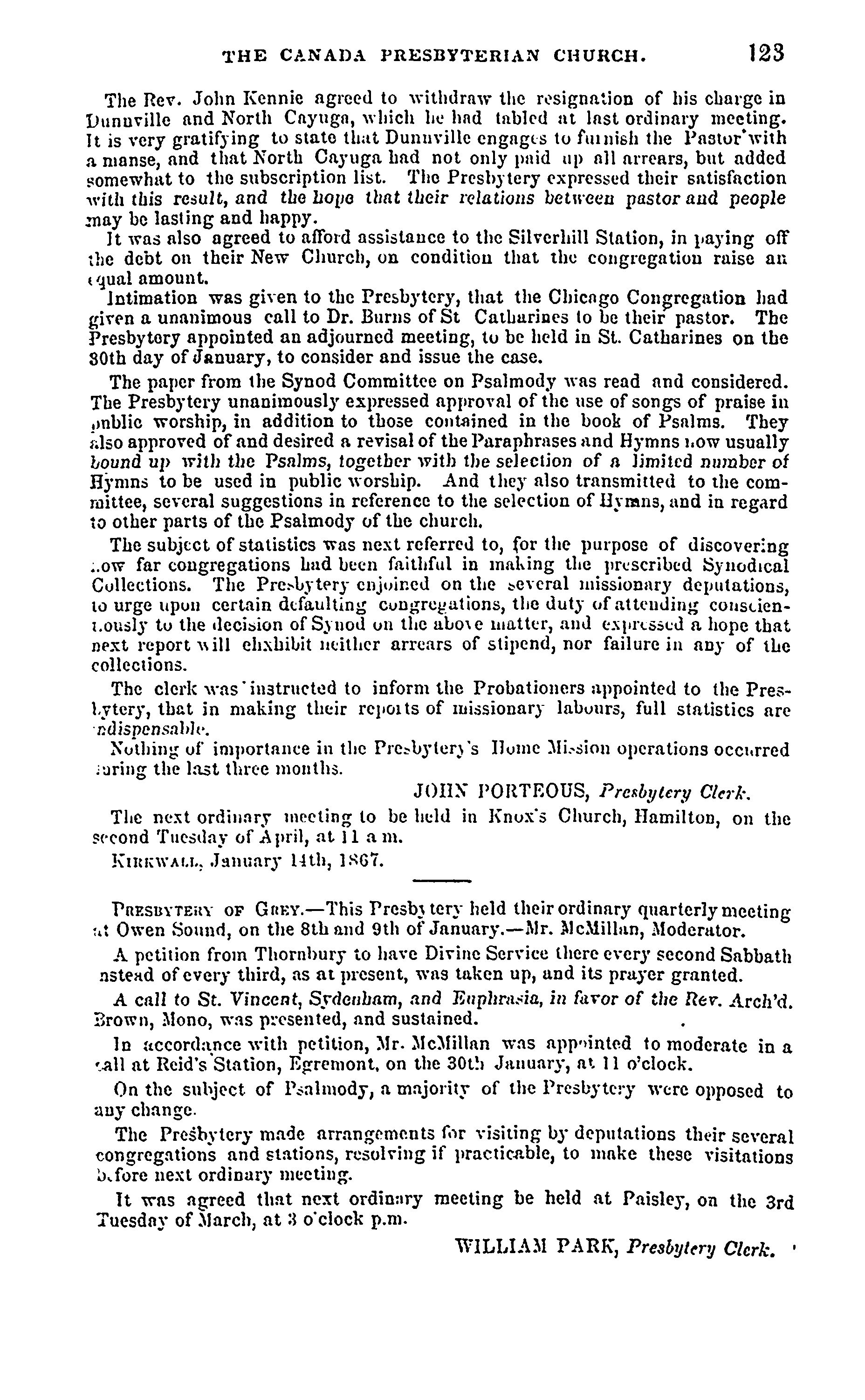 - Presbyterian Church in Canada Archives, Toronto.