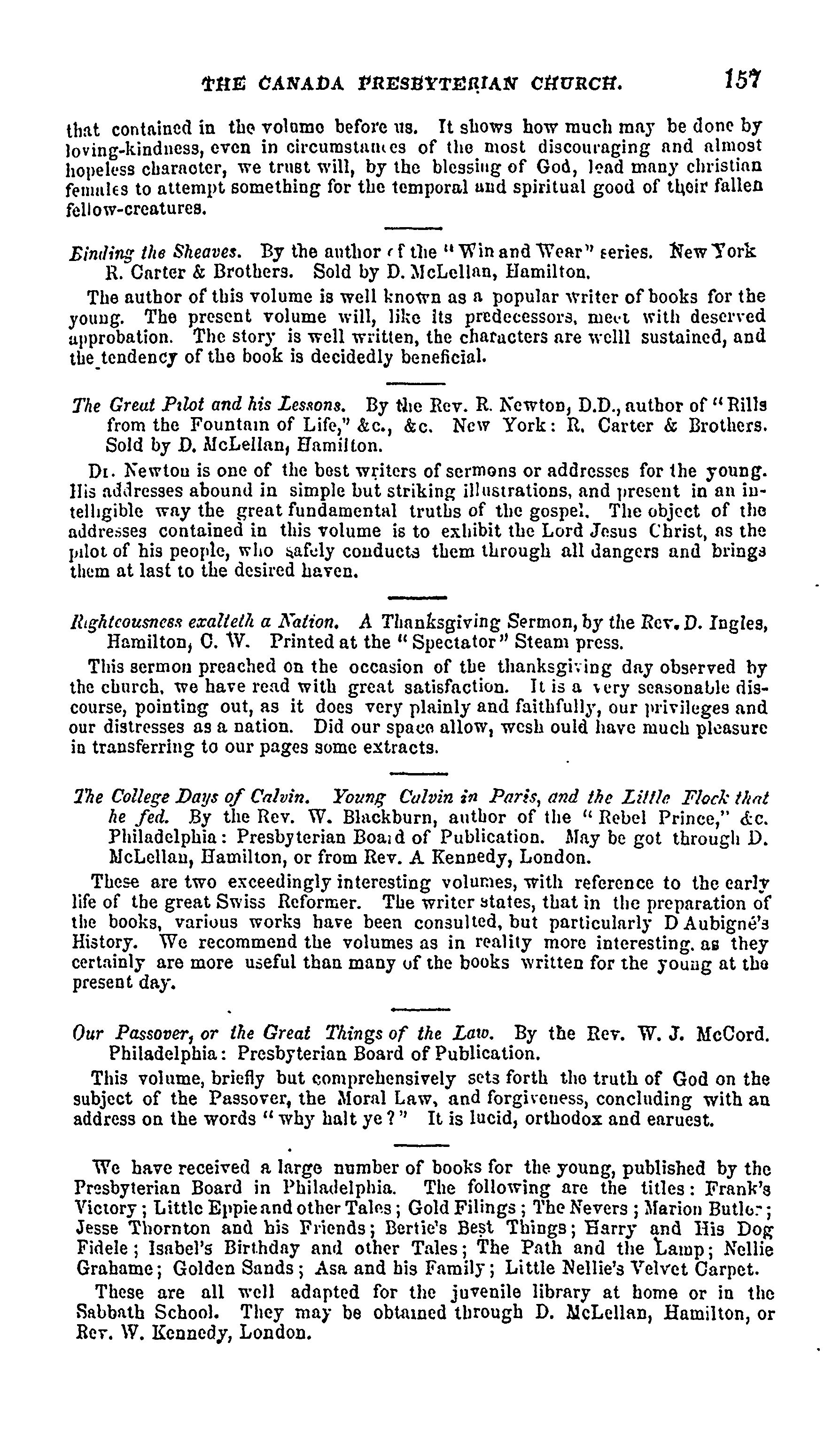 - Presbyterian Church in Canada Archives, Toronto.