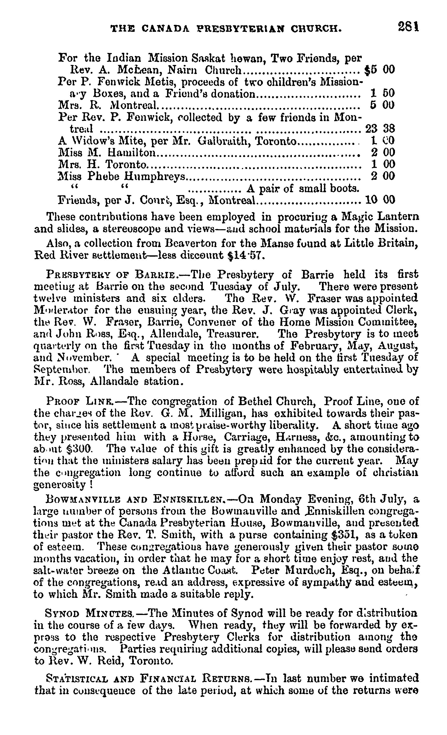 - Presbyterian Church in Canada Archives, Toronto.
