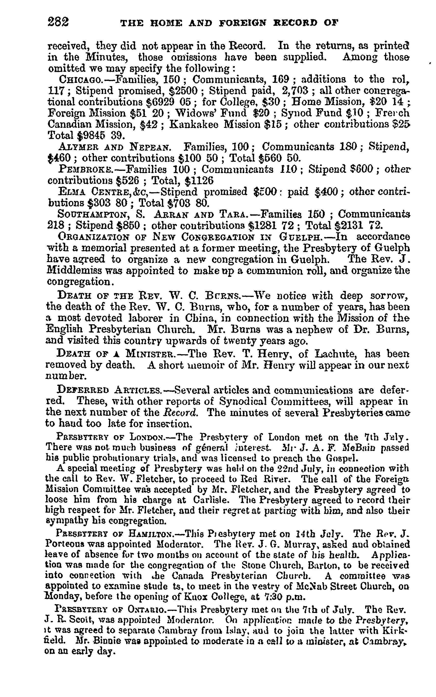 - Presbyterian Church in Canada Archives, Toronto.