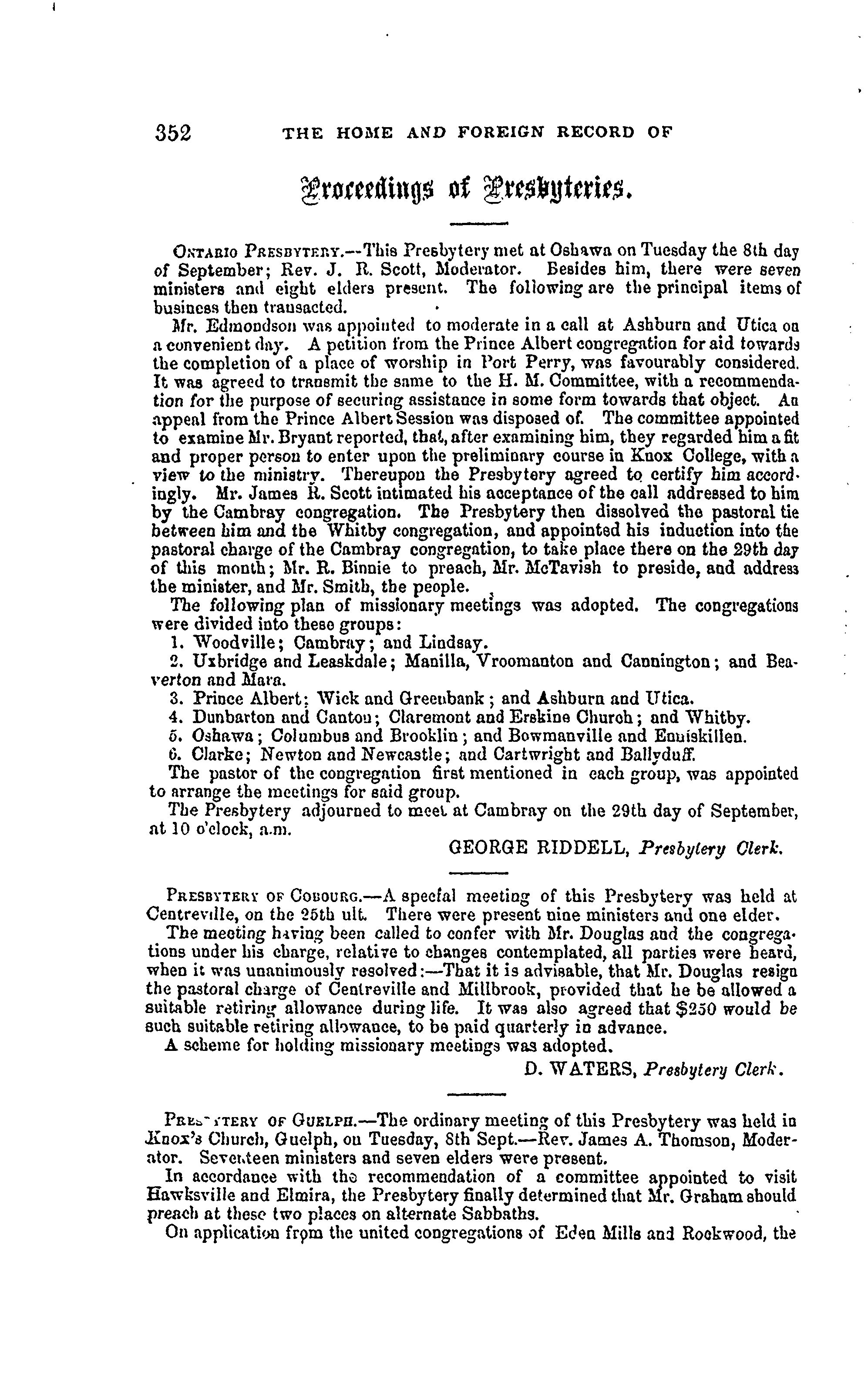 - Presbyterian Church in Canada Archives, Toronto.