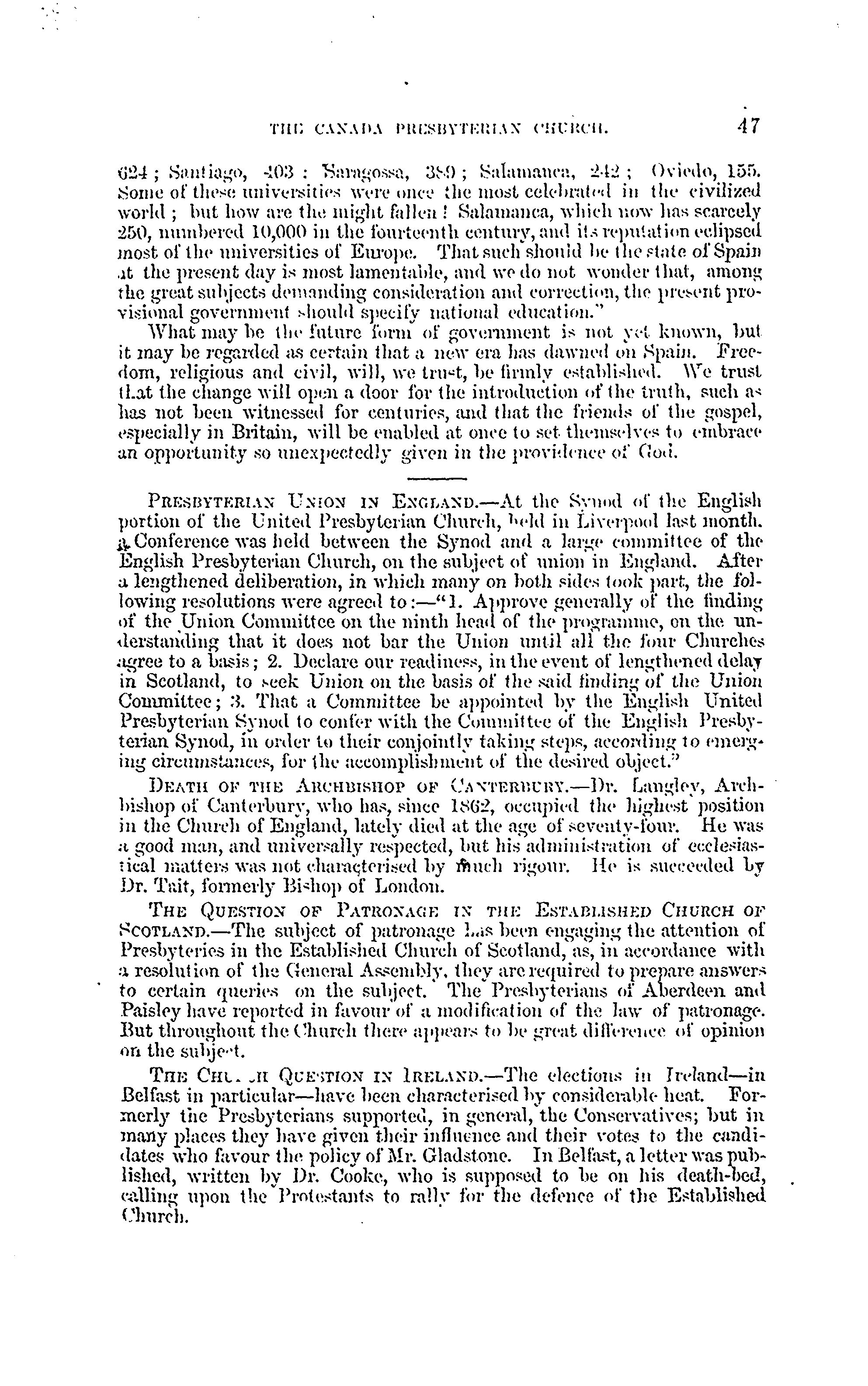 - Presbyterian Church in Canada Archives, Toronto.
