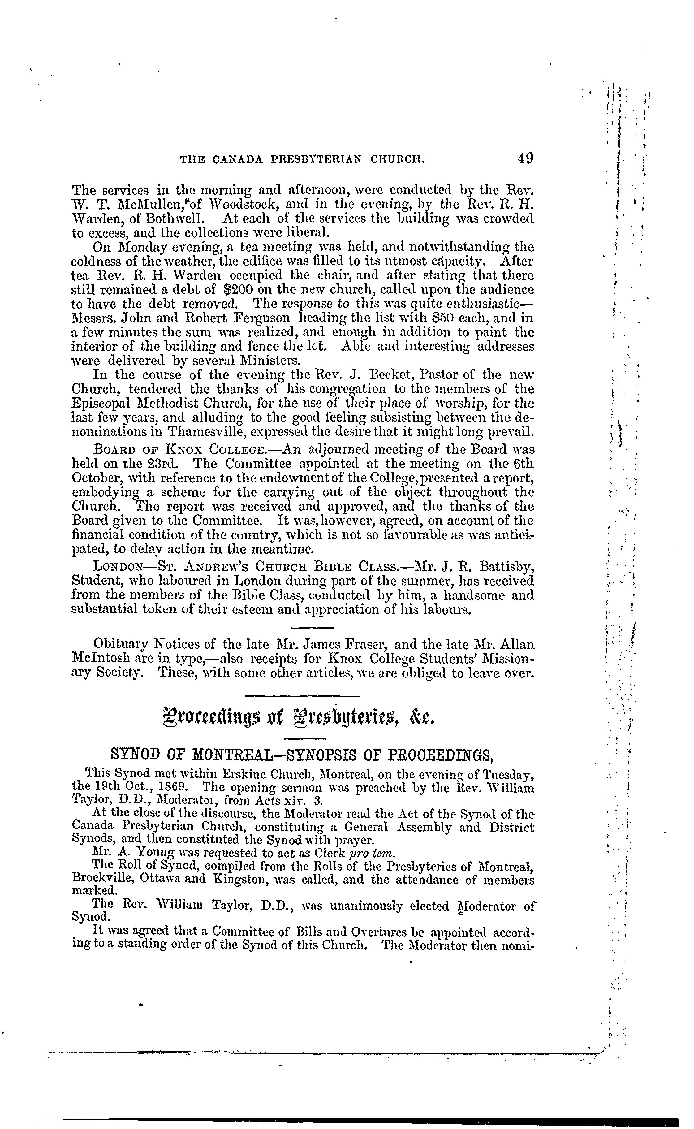 - [Toronto : Printed for the Committee by the Globe Print. Co., 1869]