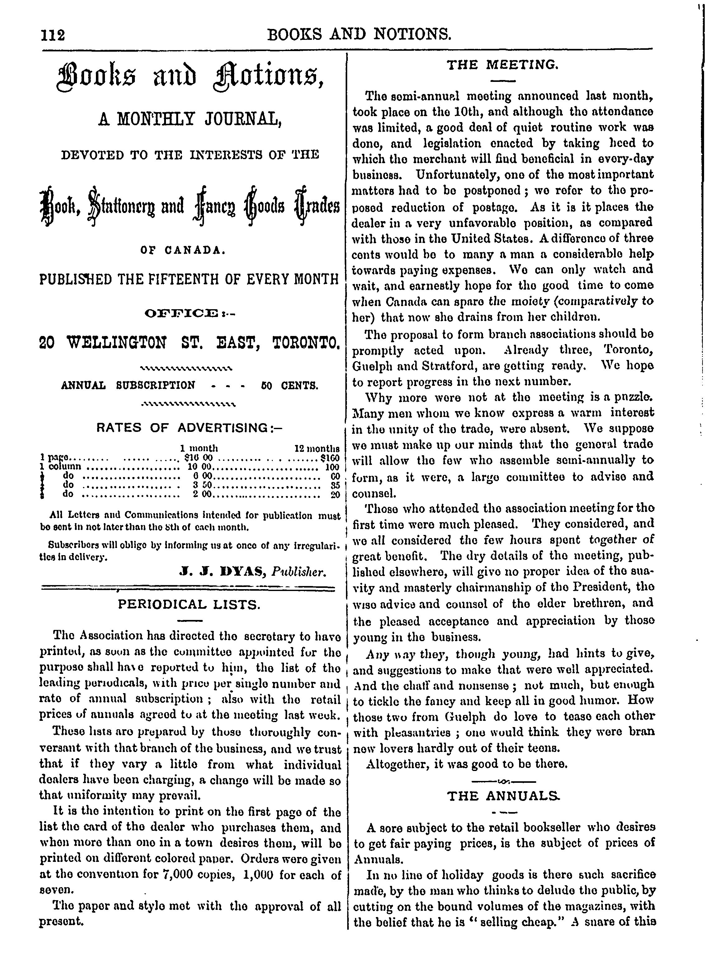 Toronto : J.J. Dyas, [1886]; 17 images avec recherche en texte intégral