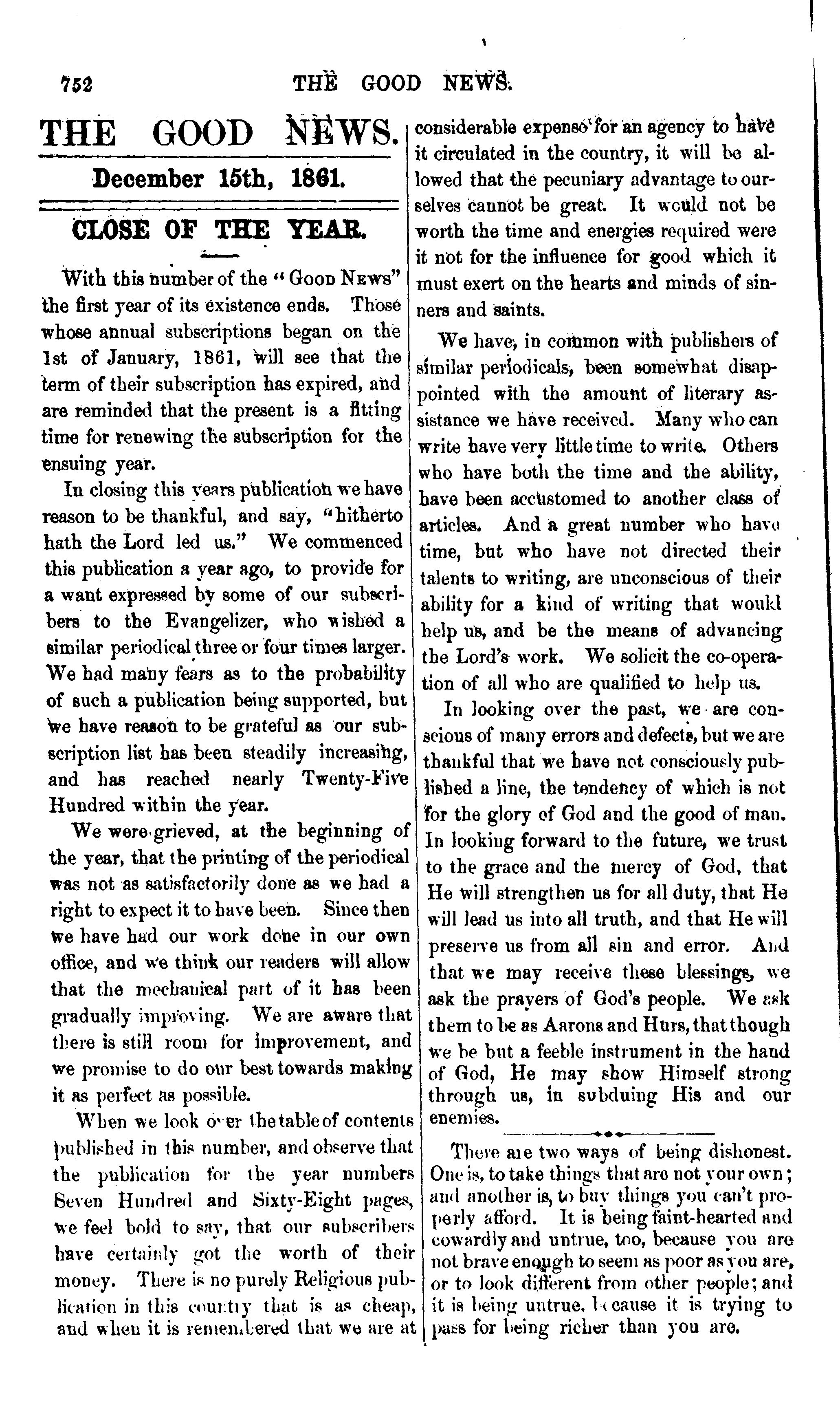 - The good news [Vol. 1, no. 24 (Dec. 15, 1861)]