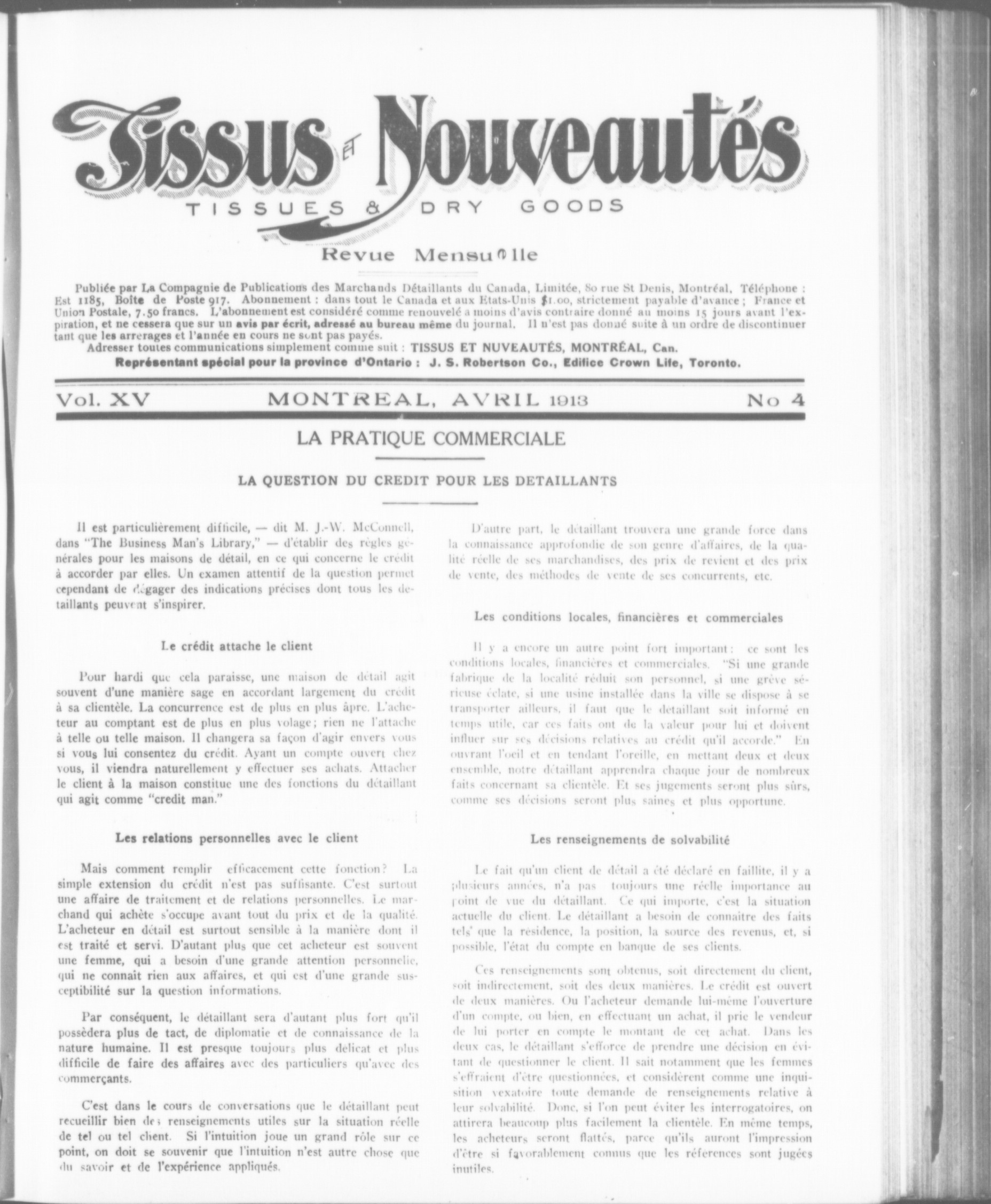Tissus et Nouveautés. : Vol. XV, No 4 (avril 1913)