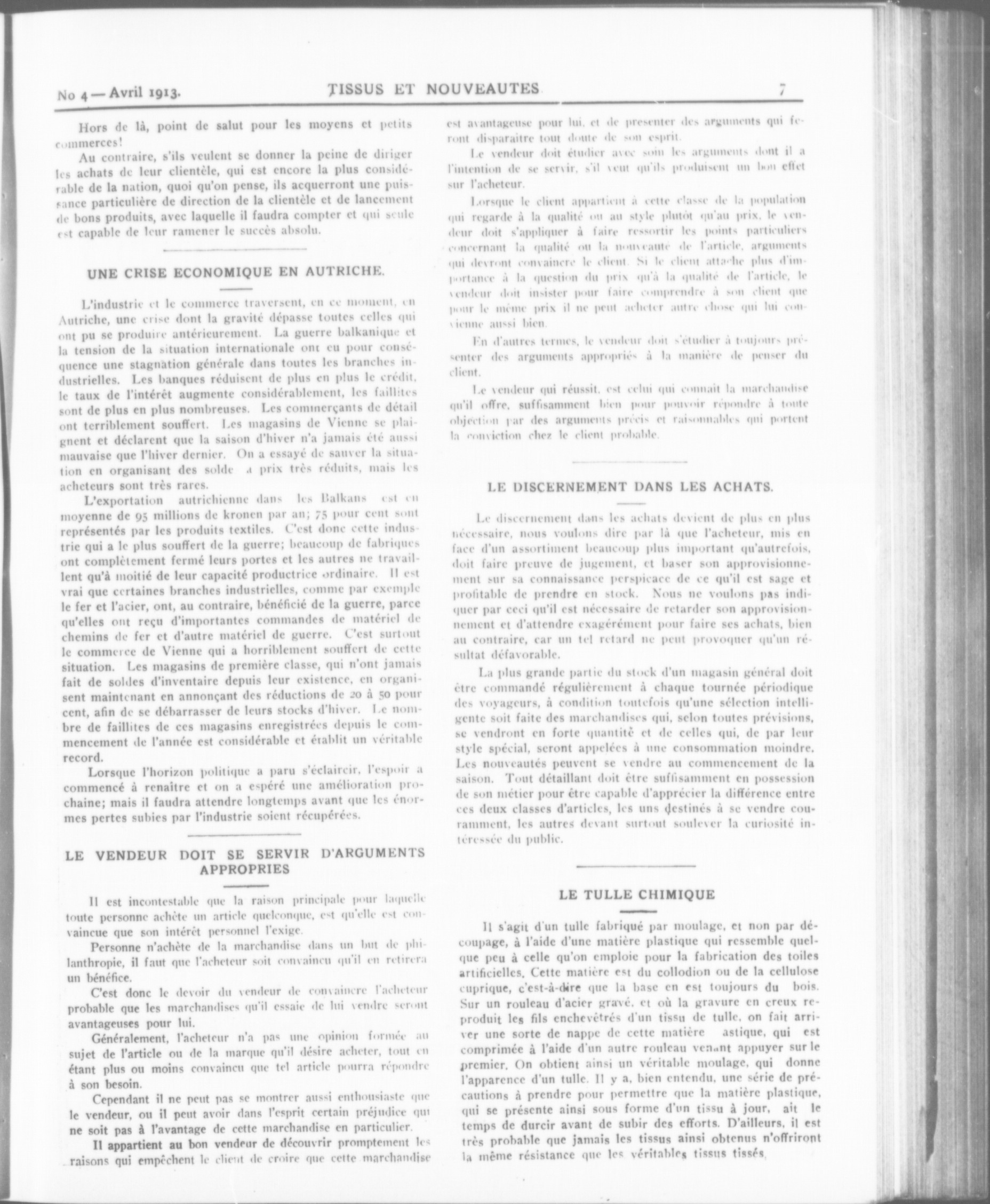 Tissus et Nouveautés. : Vol. XV, No 4 (avril 1913)