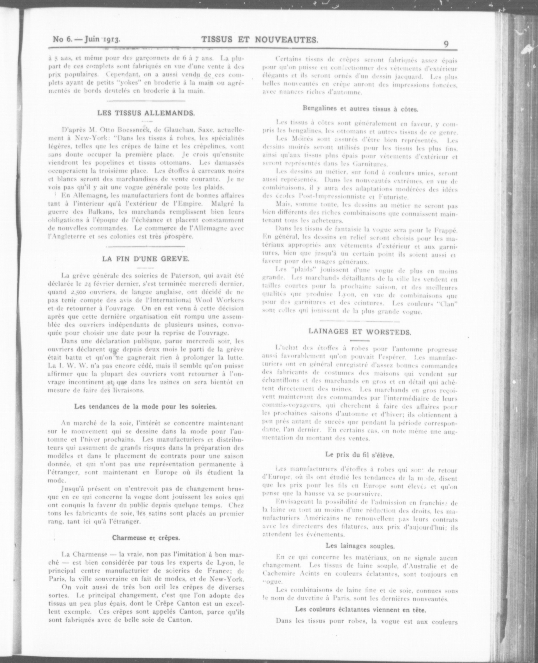 Tissus et Nouveautés. : Vol. XV, No 6 (juin 1913)