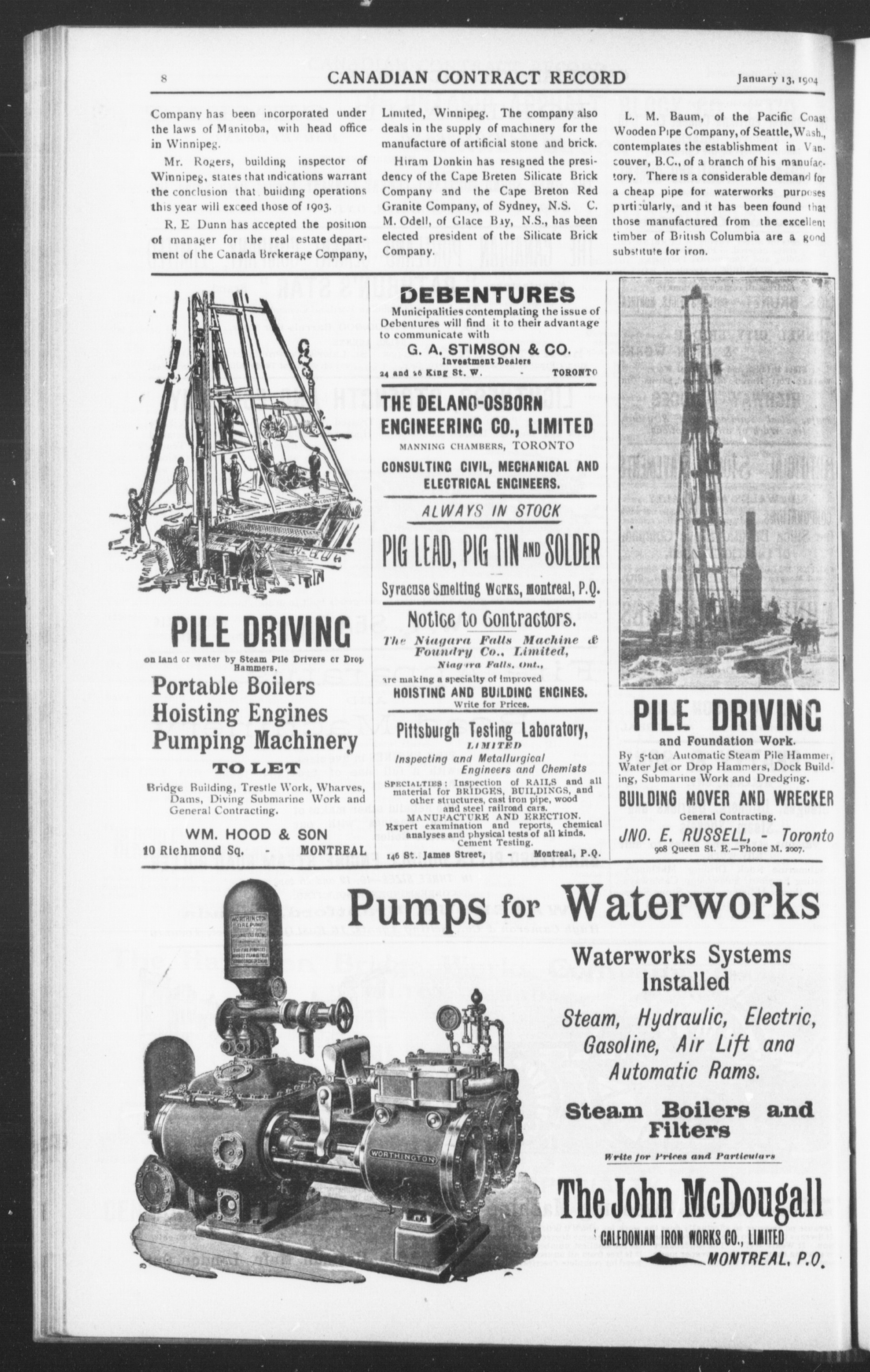 The Canadian contract record : Vol. 14, no. 48 (Jan. 13, 1904)