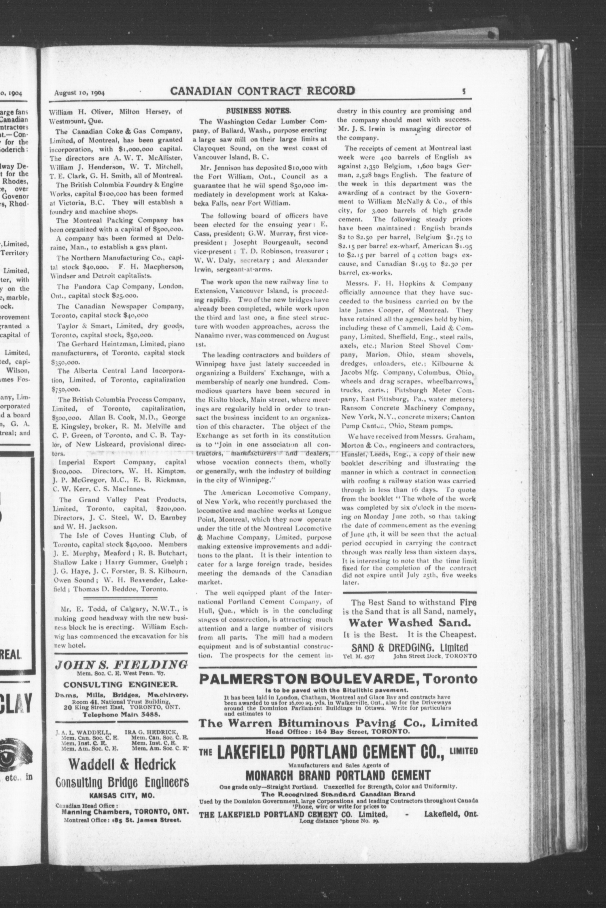 The Canadian contract record : Vol. 15, no. 26 (Aug. 10, 1904)
