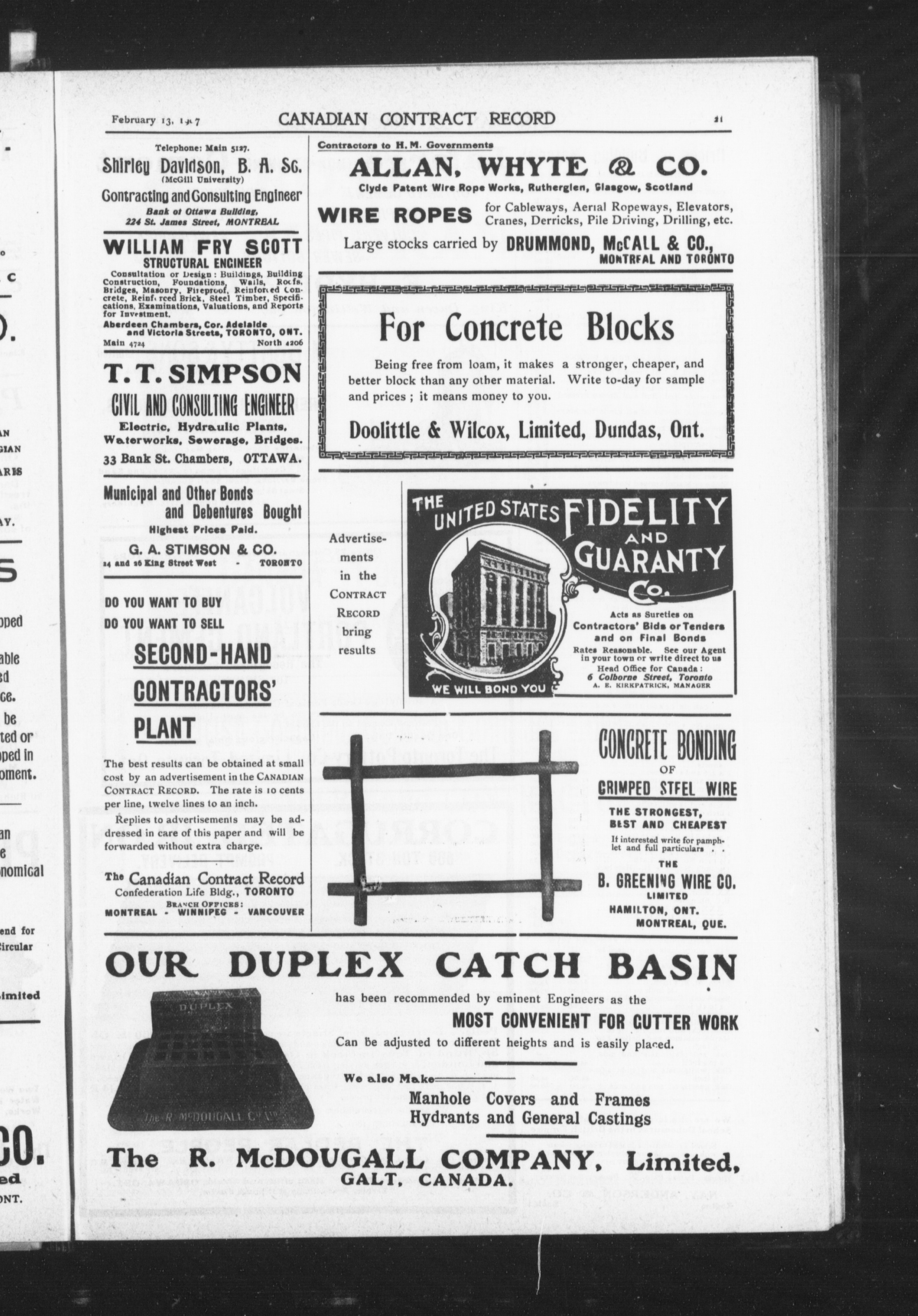 The Canadian contract record : Vol. 17, no. 50 (Feb. 13, 1907)